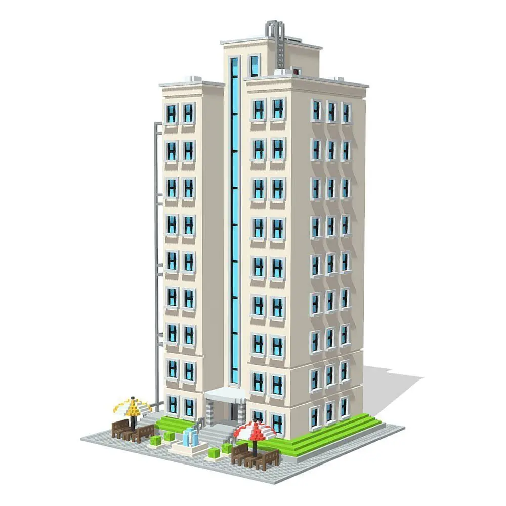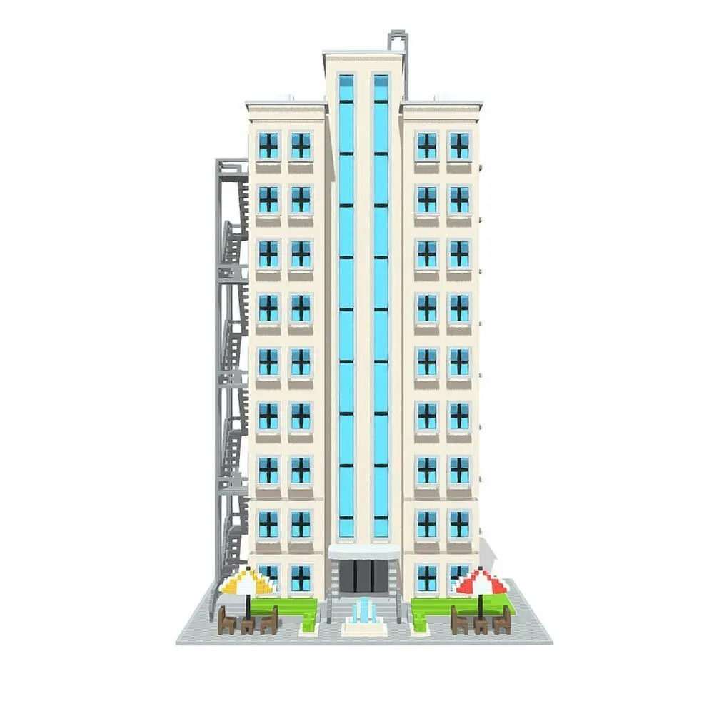 Voxel Voxel Beach Hotel 3d model by Shubbak! You can use this building model very efficiently in games and digital media due to the voxel format, low number of polygons per element, and accurate texturing.