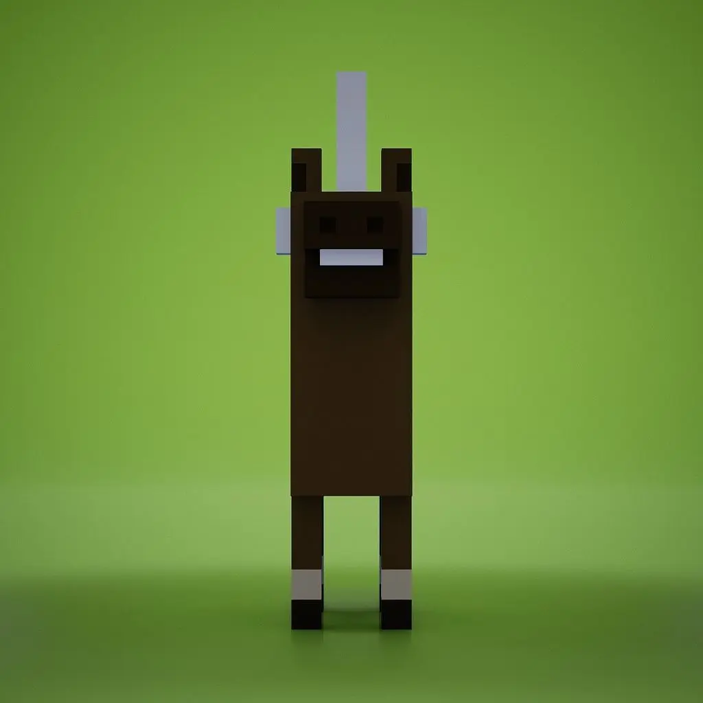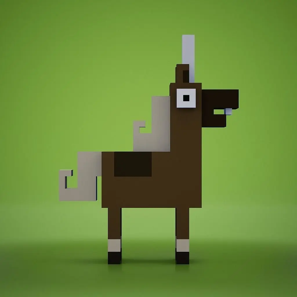 A voxelized model of a Brown Unicorn Character
