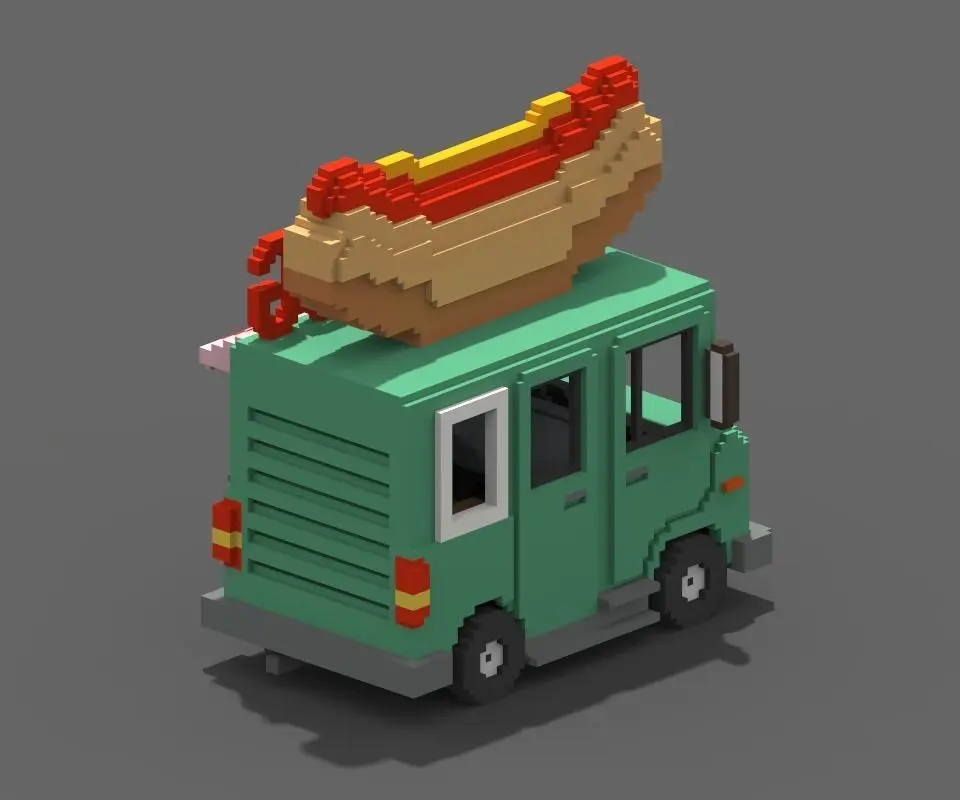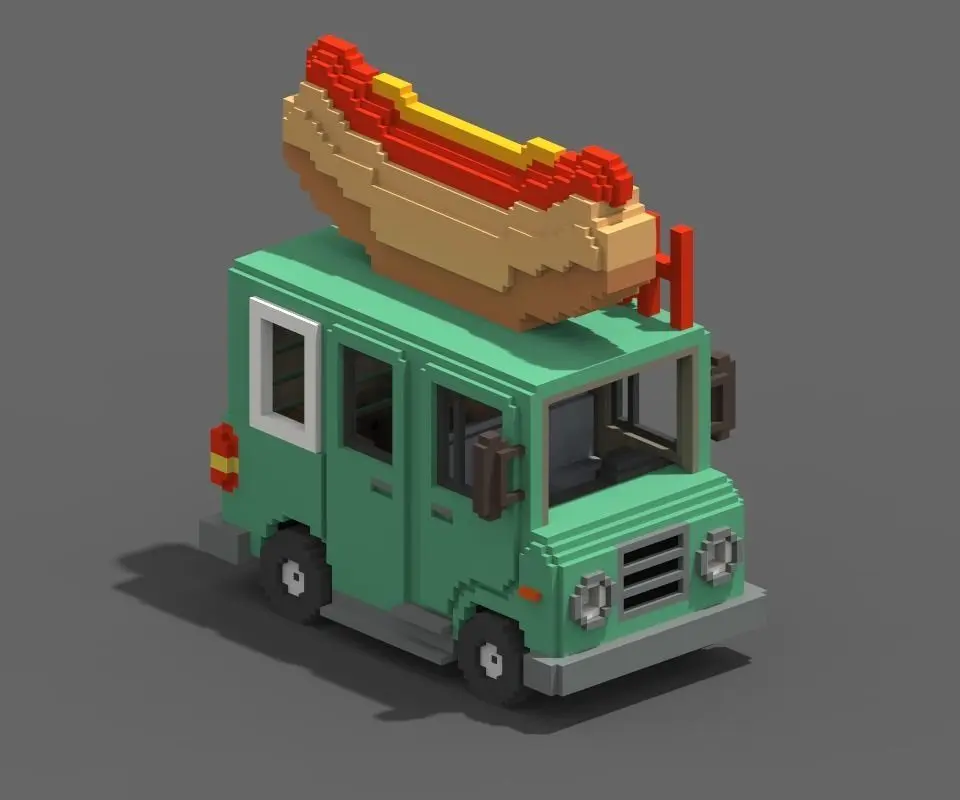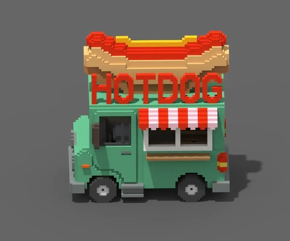 Voxel HotDog Van 3D model created in MagicaVoxel Editor.