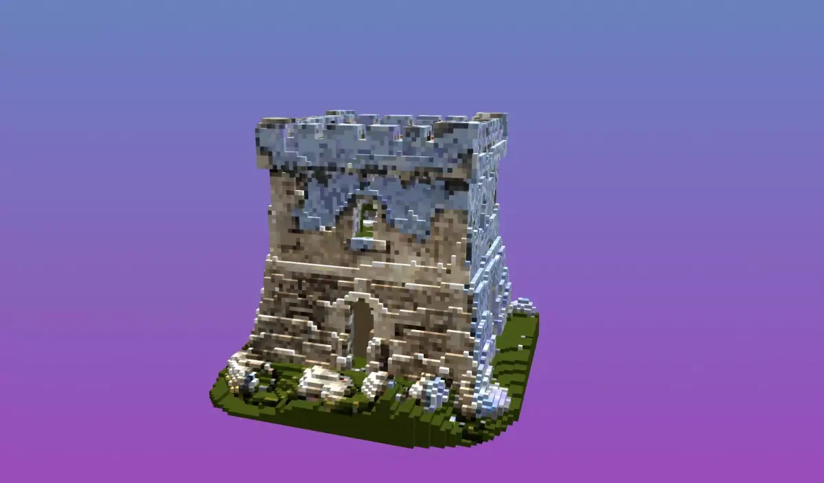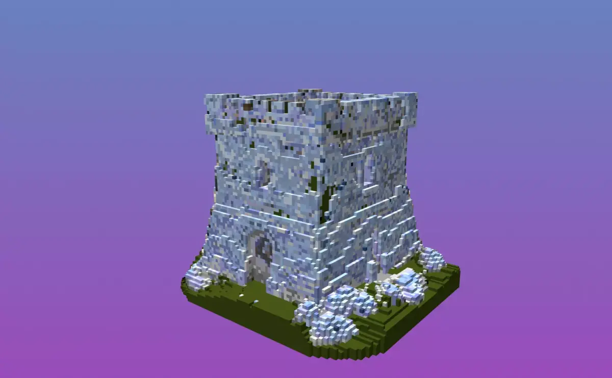 - Voxel stone fortress with grass base