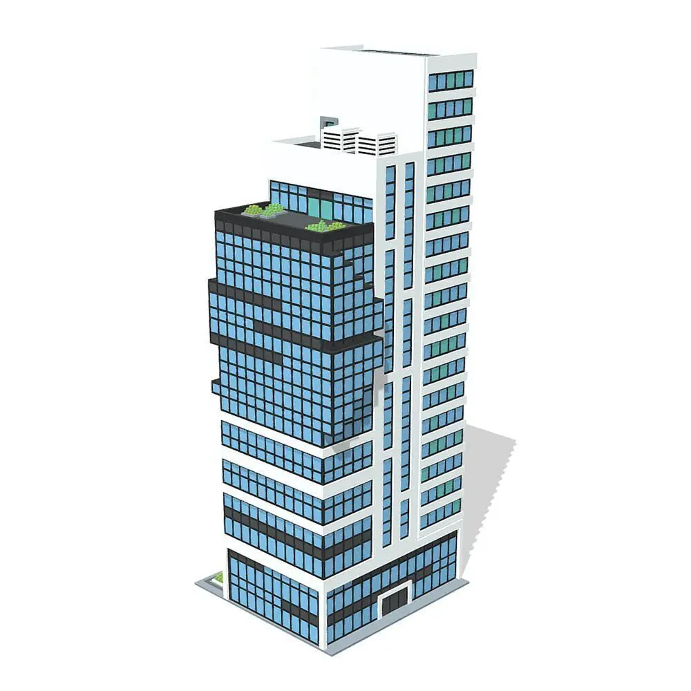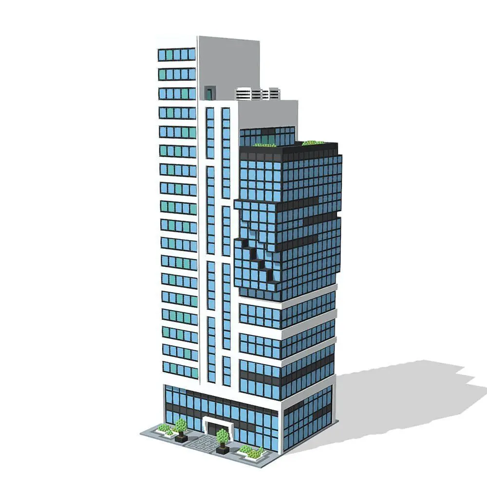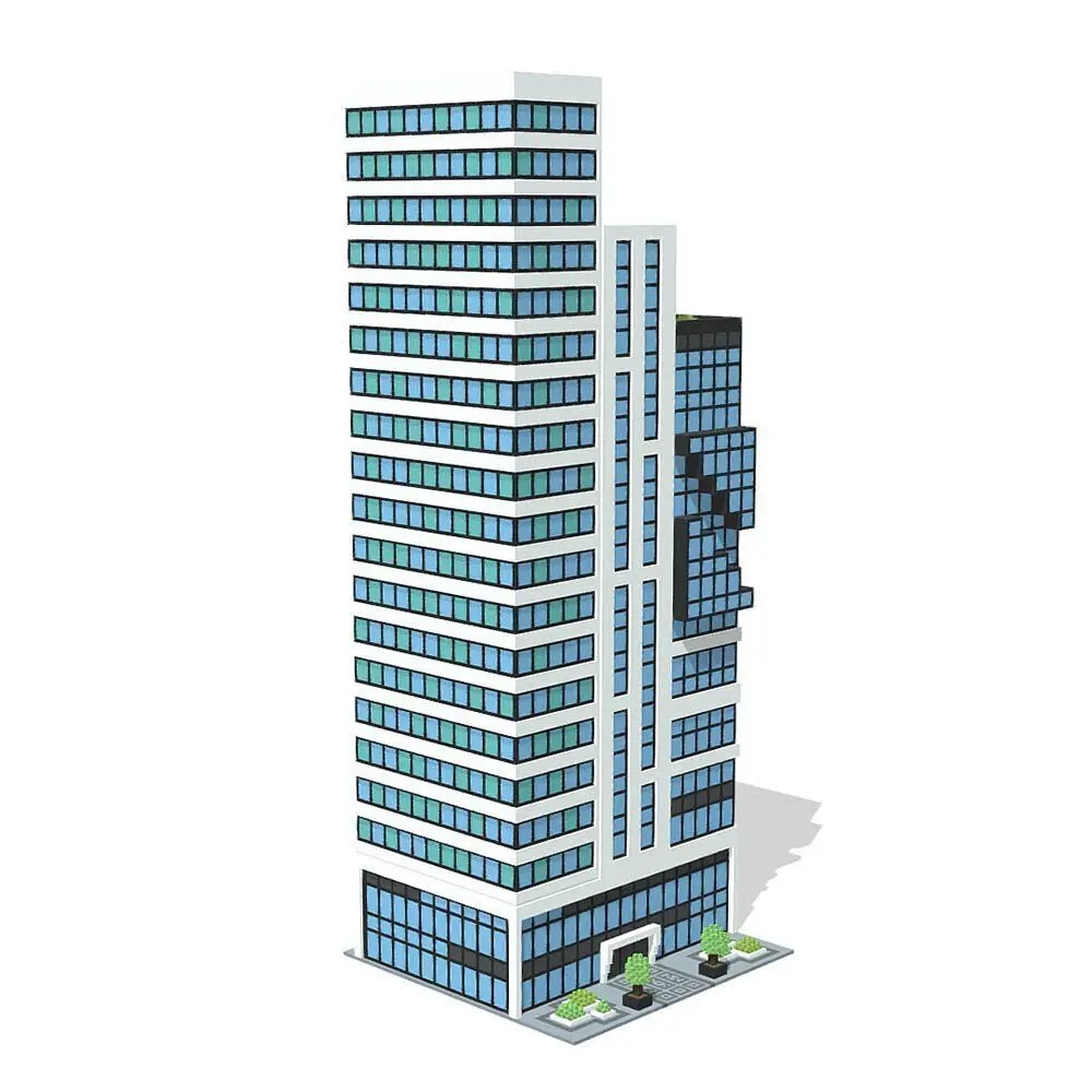 Voxel Triple Tower Building 3d model by Shubbak! The model represents a business skyscrapers with three style combination. You can use this tower model very efficiently in games and digital media due to the voxel format, low number of polygons per element, and accurate texturing.