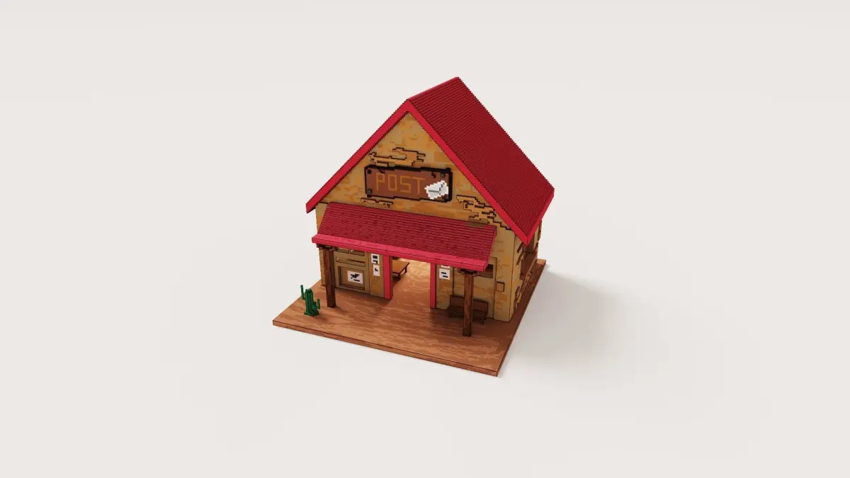Voxel Wild West Post Office with a cactus and furniture Low-poly 3D model