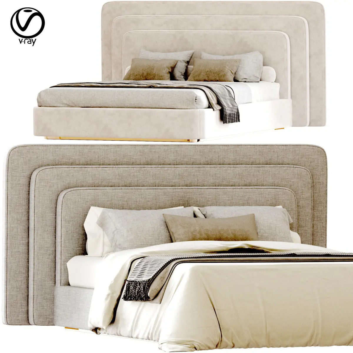 Name: Voyage_Royal_Bed_ItalyVersion: 2017Preview: YesUnits: MillimetersDimension (for 2 beds): 5235.66 x 2550.45 x 1302.05Dimension: 2280 x 2550.45 x 1302.05Polys: 812 428XForm: YesBox Trick: YesModel Parts: 19Render: vray 5xFormats: 3Ds Max 2017, OBJ, FBX