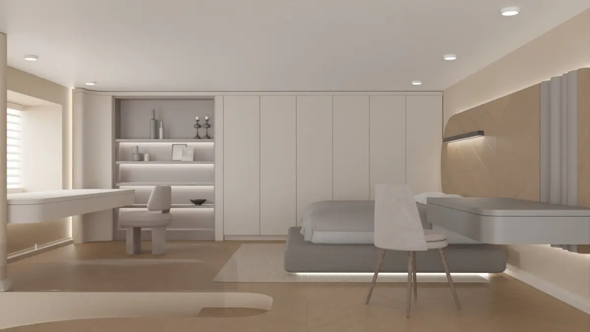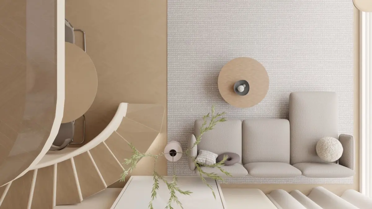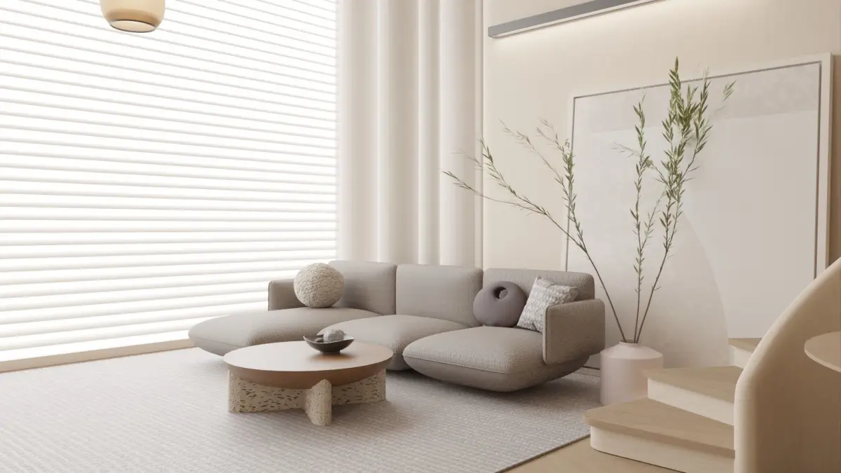 Cozy loft design, with a variety of furnitures and interior decorations inside. Living room downstairs and bedroom upstairs. Kitchen and bathroom included.