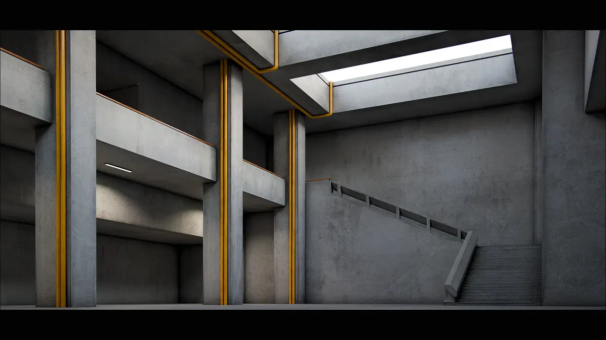 A scene with various explorable rooms connected to each other, fully baked in 4K.