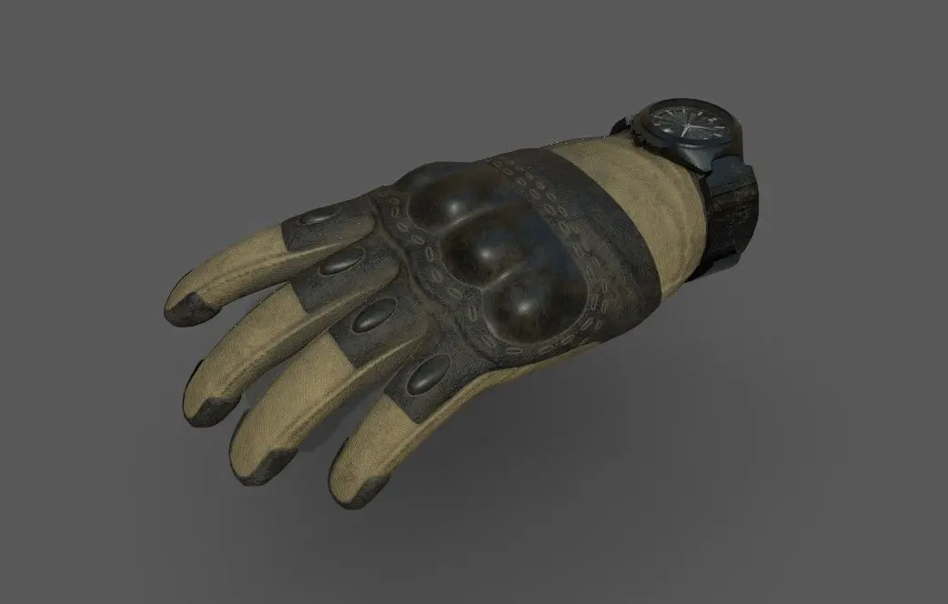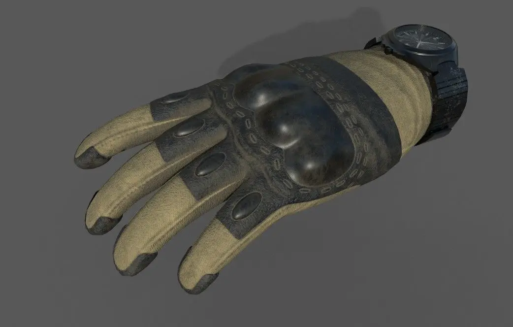 VR Tactical Gloves is a low poly 3D model rigged and ready for animation. Includes left and right hands with 2 separated watches that can be toggle on/off for each hand. Textured with Substance Painter 2 Different textures (Yellow and Black) PBR setup using standard shader with albedo, metallic-smoothness and normal maps.Details:Glove tris/verts count : 3786 verts, 6067 trisWatch tris/verts count : 1176 verts, 1168 trisGlove texture : 4k Watch texture : 2k