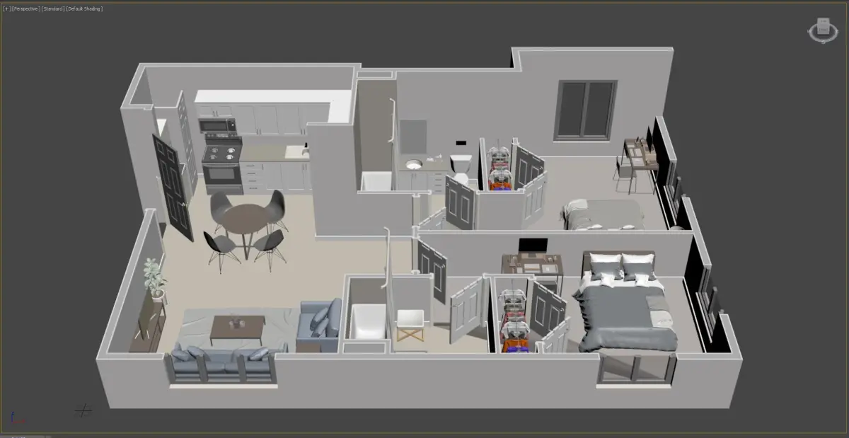 - High detailed floor plan model with Vray next materials.