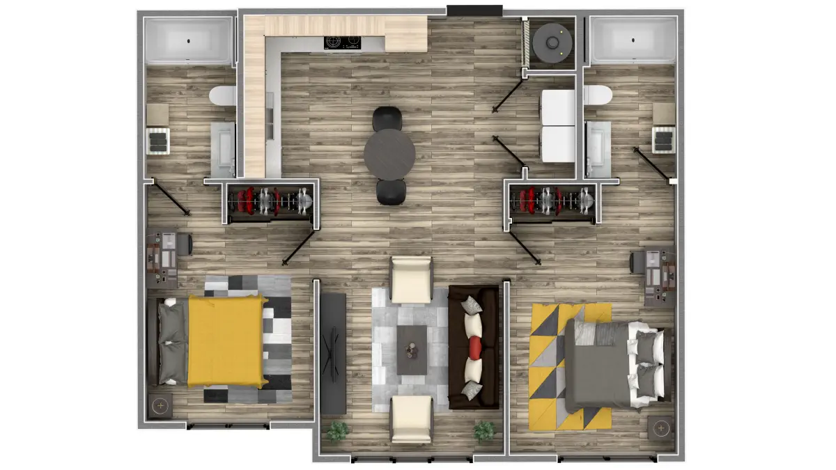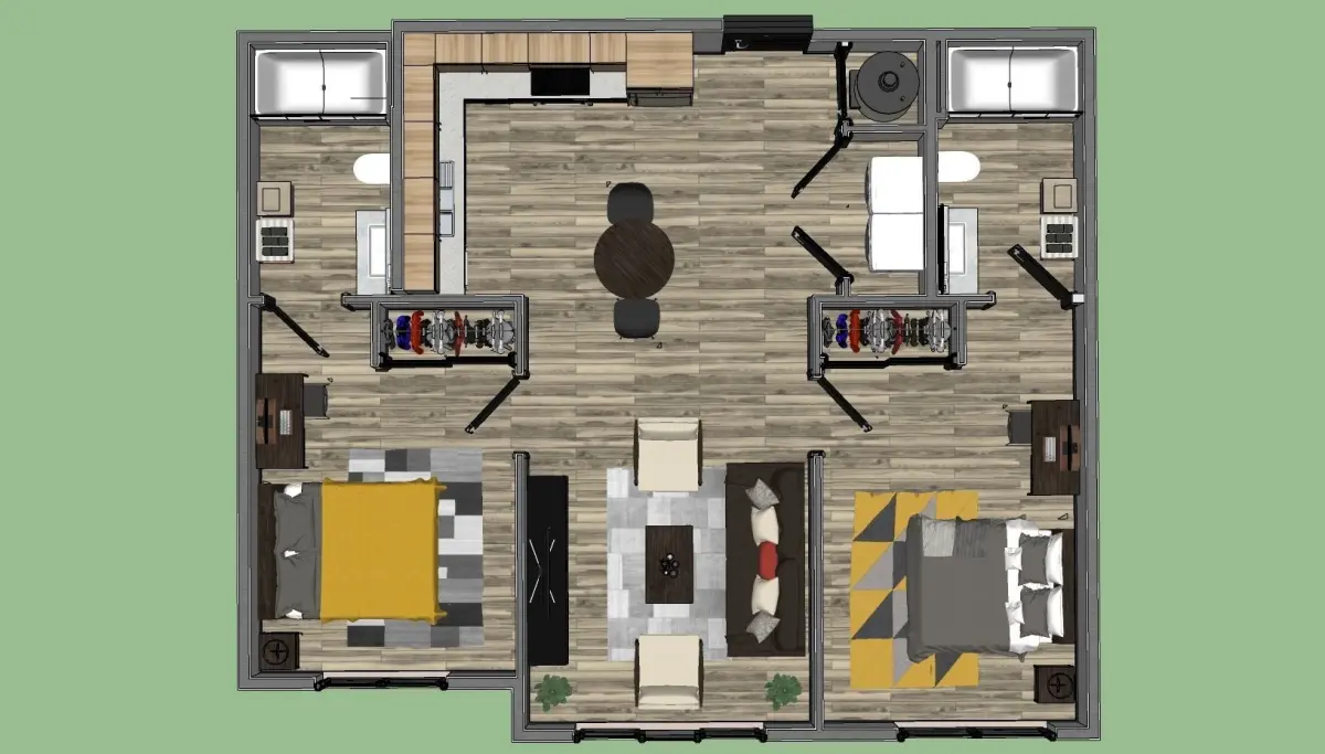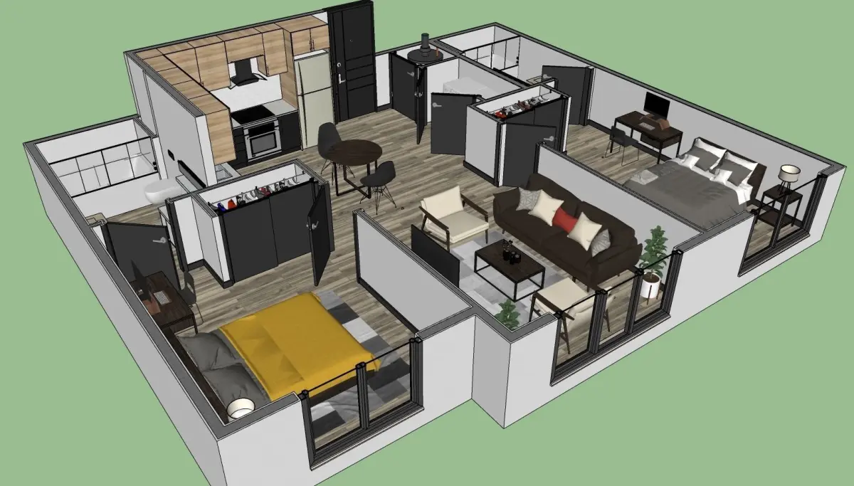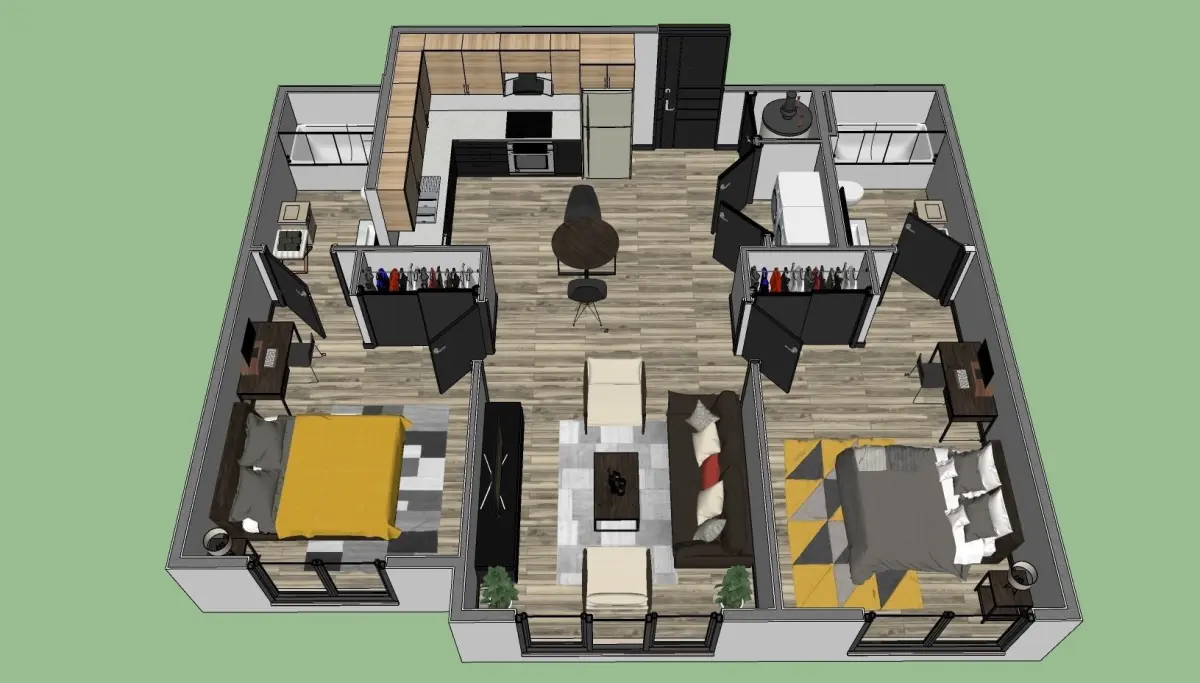 - The model include 2 bathrooms, 2 bedrooms, 1 kitchen and 1 living room with full furnitures.