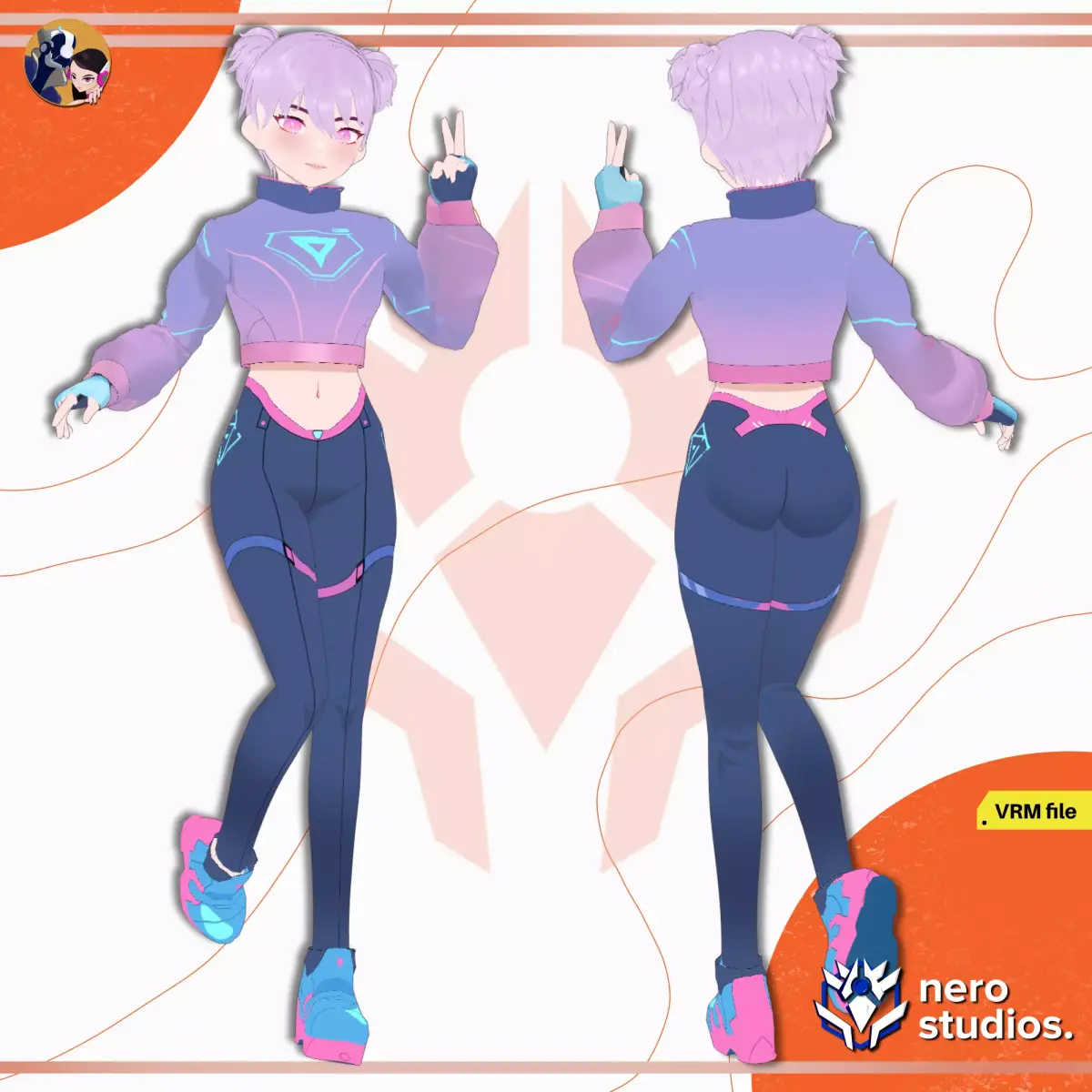 1 .VRM file with the model as shown on the image, made and exported from Vroid Studio.