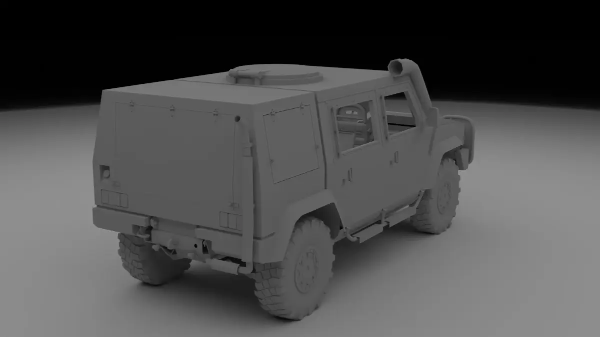 Highly detailed 3D model of the VTL-M Lince (Iveco Light Multirole Vehicle) — an Italian 4x4 light armored vehicle used by NATO and European forces. This model is built to as close to real-world accuracy as possible and includes a fully modeled interior featuring dashboard, seating, and cabin details.