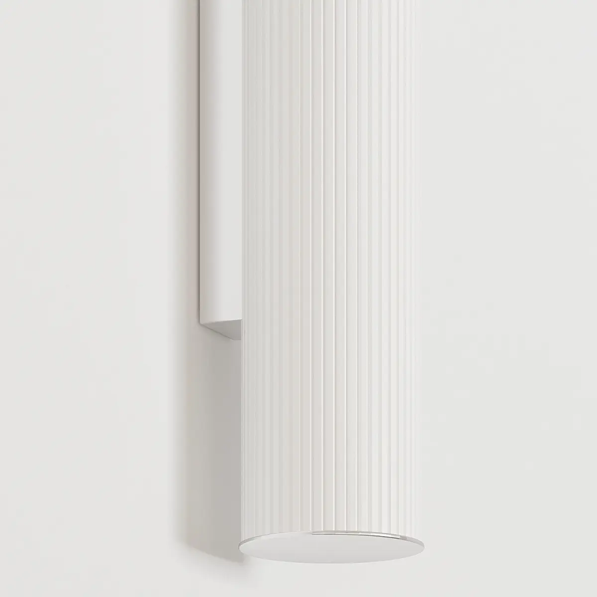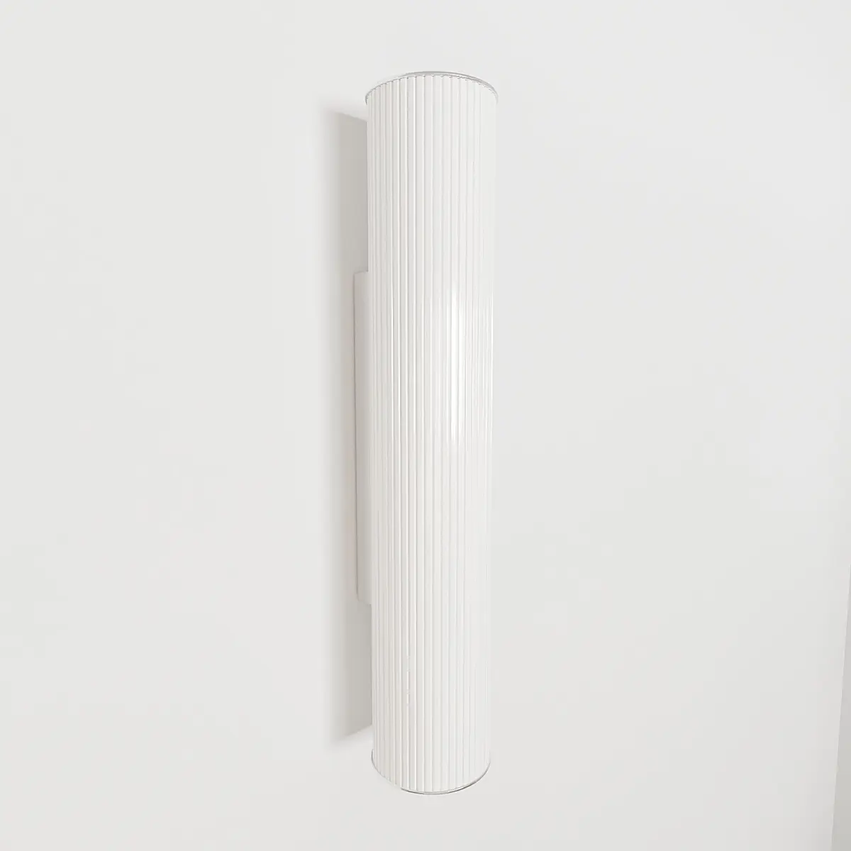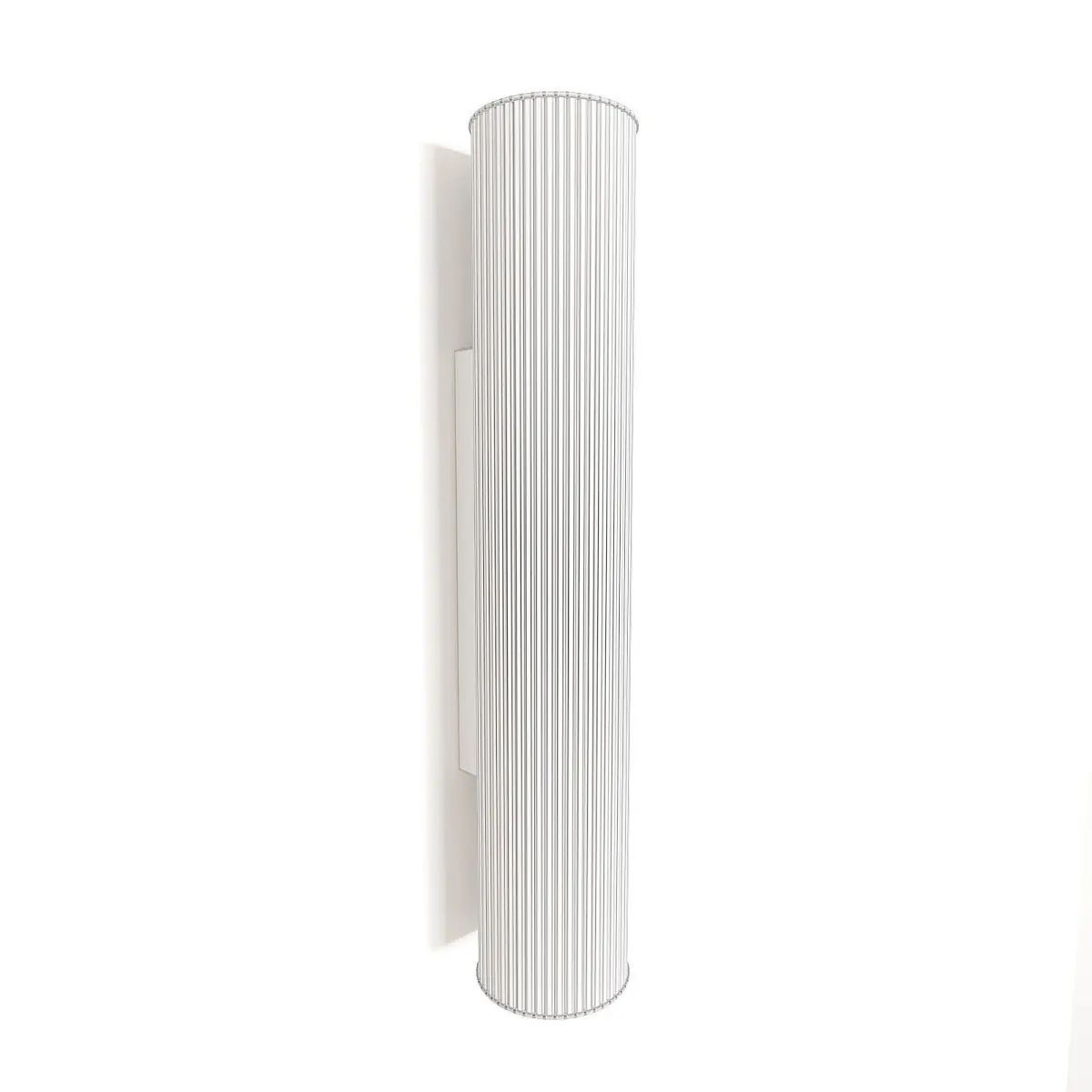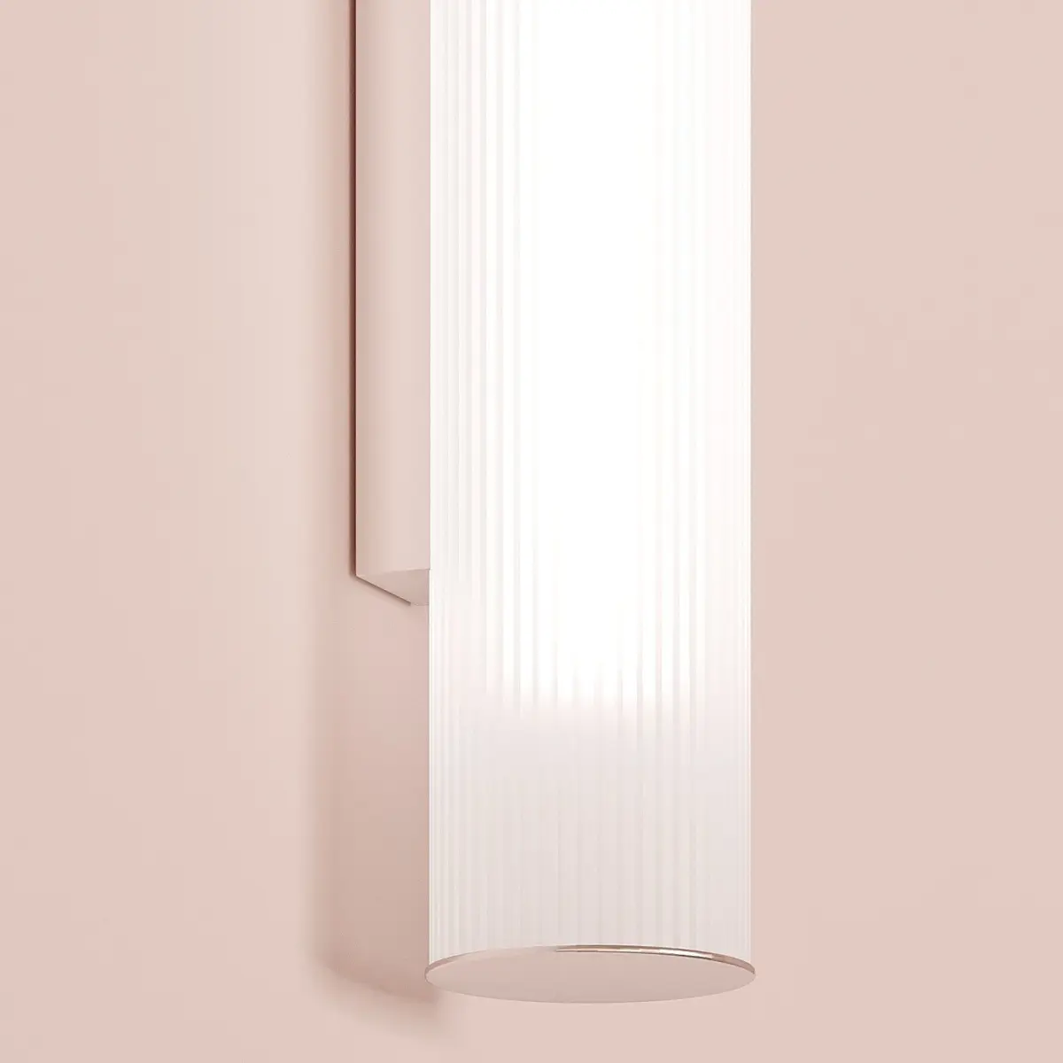 3D model of a cylindrical lighting fixture / sconce, in translucent opal glass with a distinct rippled surface and brushed metal finishes; by Ferm Living. Mesh is high poly, mainly based on quads, smooth and clean. It has a Corona Light attached to it. Model is ready to be used in close-up product visualisation or archviz projects. It is constructed based on the original dimensions and technical data of the product.