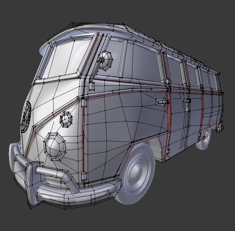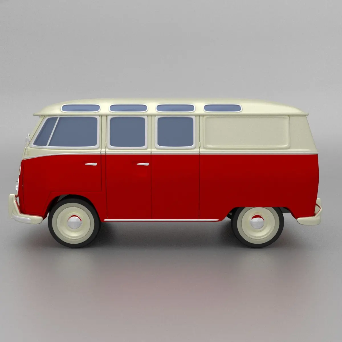 This is a 3D Model of a VW Samba T1 Bus created with Blender 2.79No interior includedTexture includedThe Blender file has a Mirror and Subsurf modifier appliedVertex count: 181,303Face count: 177,540 (all quadrilateral)