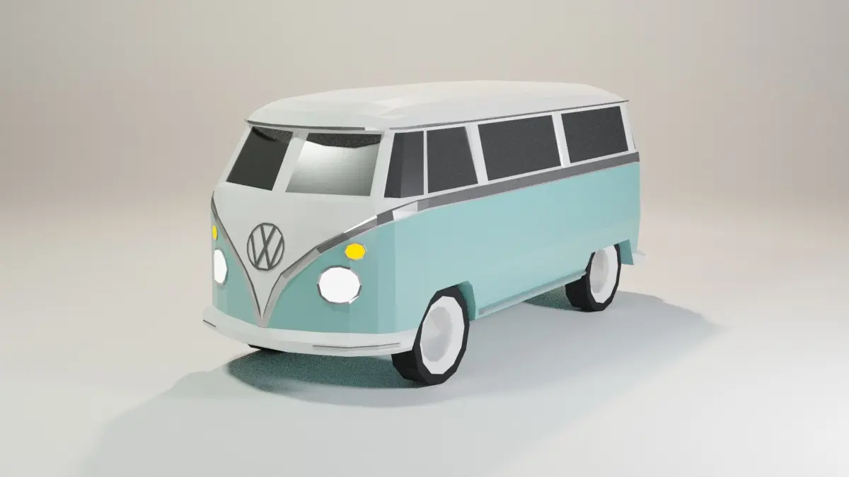 Low Poly Stylised VW Camper Bus with less than 2000 tris total.