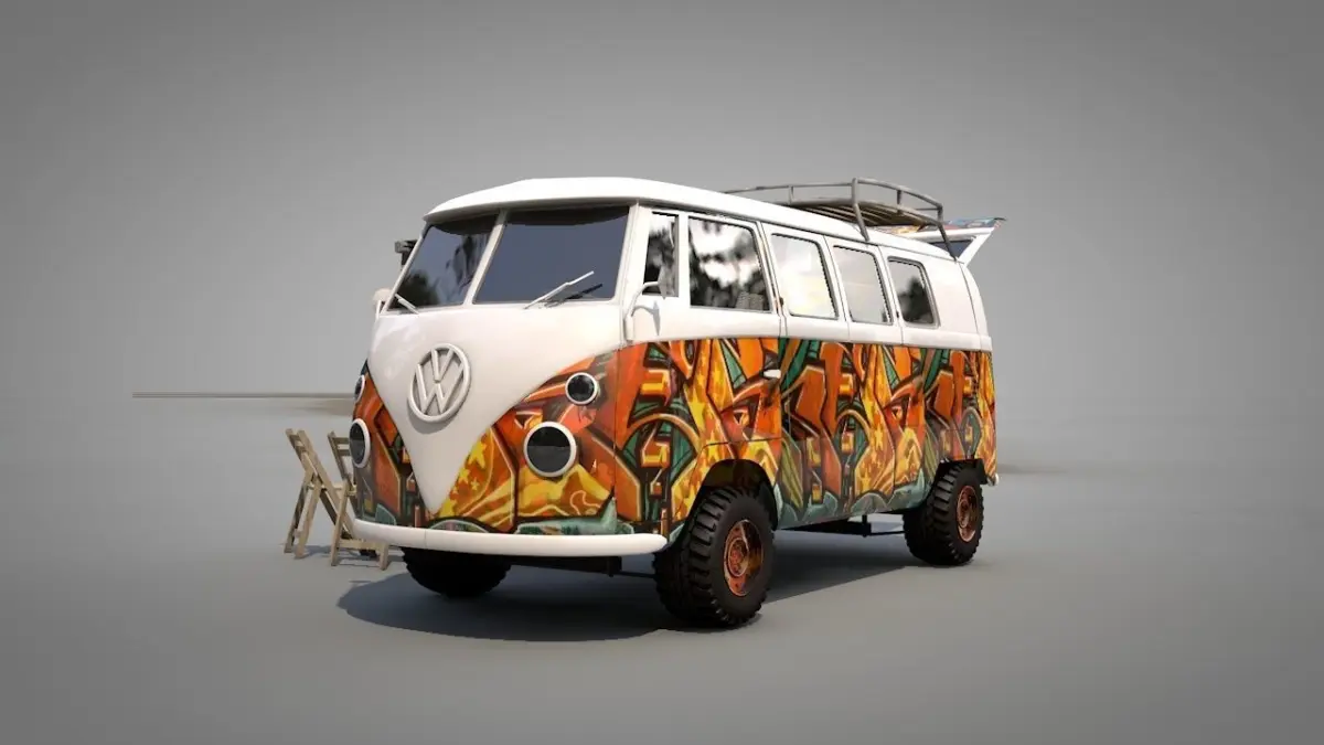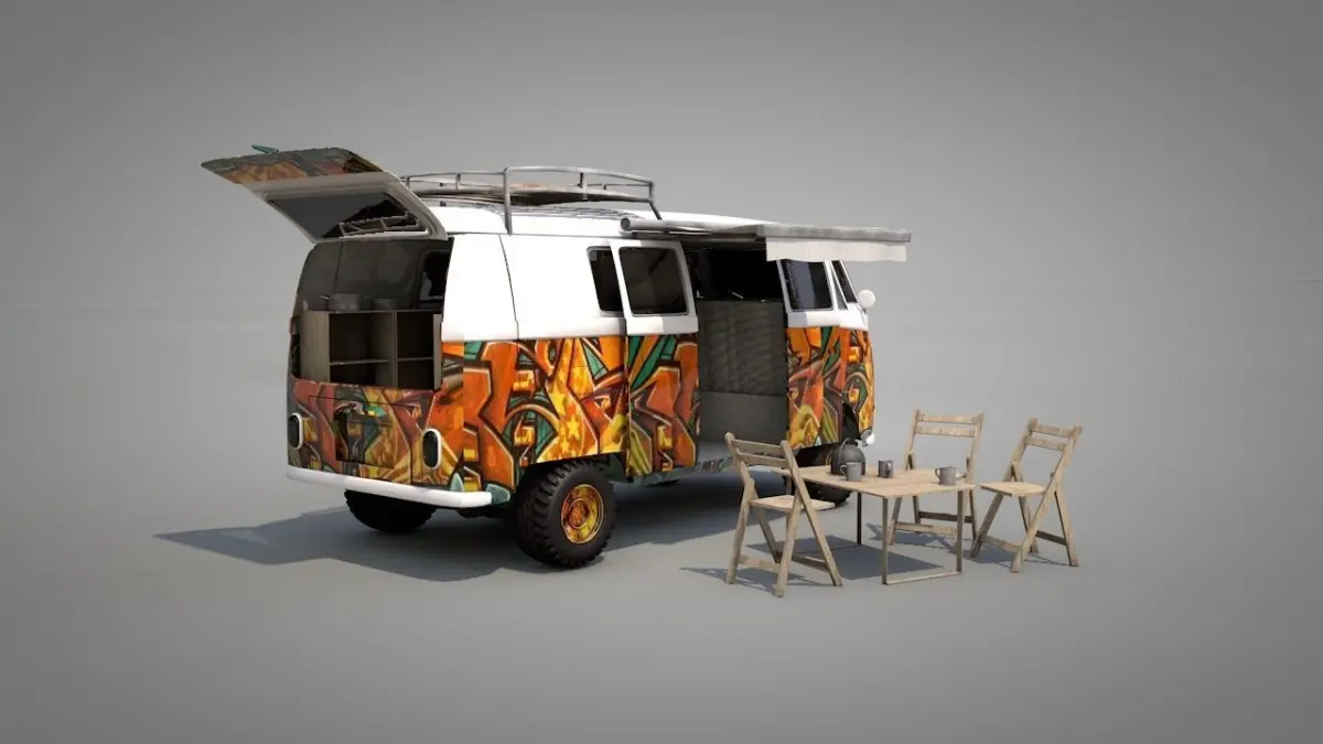 This is a very high quality camp bus (Campervan) model. Probably not suitable for video games but other purposes. If you decide to use it in the games you must reduce the polygon count. But this is quite difficult issue and sometimes damages the models structure.