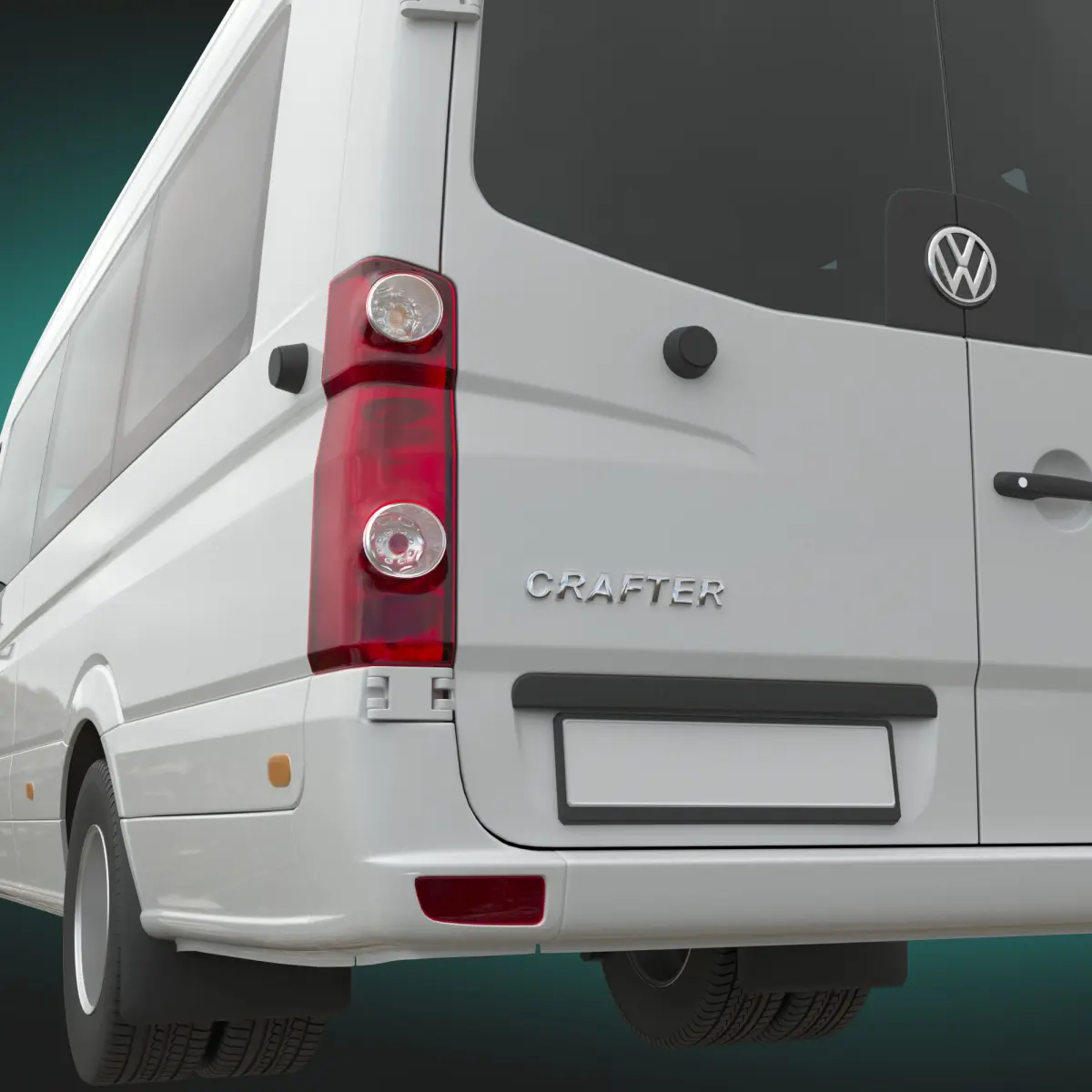 Volkswagen Crafter of the first generation, restyling 2011 (2006-2018). Minibus.4 vehicle lengths: compact, standard, long and extra long 3 roof heights: standard, high and extra high with standard roof.Available in rear and all-wheel drive options.