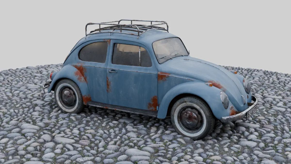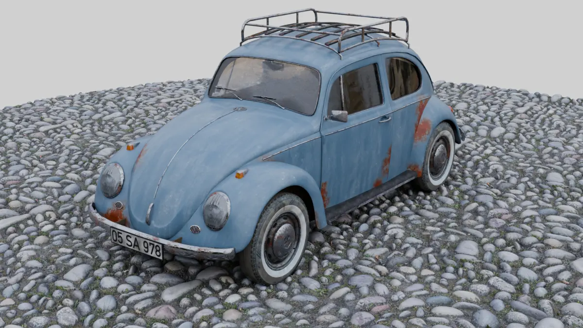 Prop for games or animations. Three different colors (blue, red and yellow) with three different sets of license plates. The blue and the red ones come with roof racks.