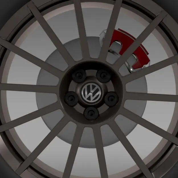 High detailed 3d model of the VW Polo R WRC Street wheel. Model is created in real units of measurement. Model with physically accurate materials.
