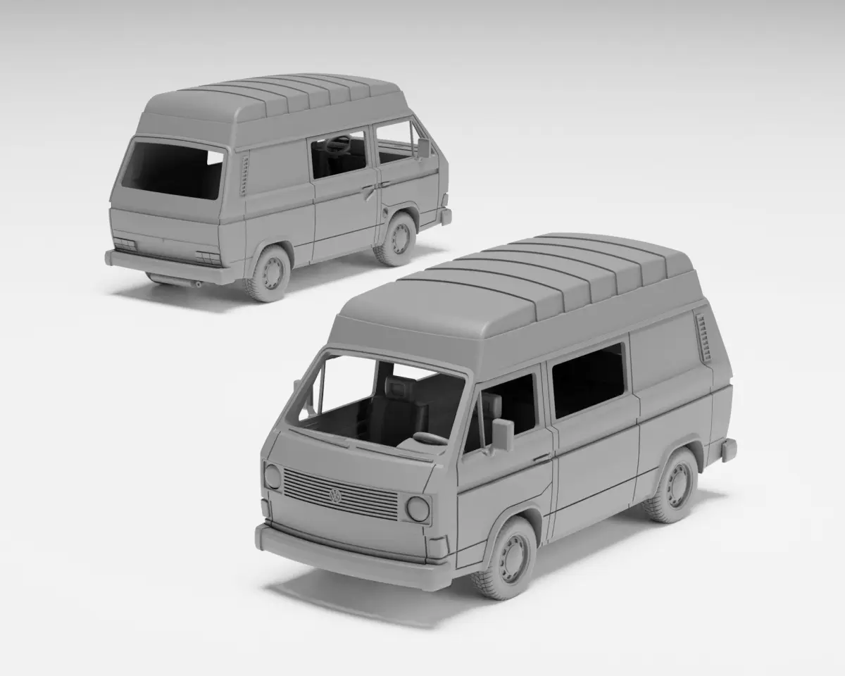 VW T3 Panel Van – a versatile and customizable model that offers a range of body options and the choice of an optional high-top roof. This kit allows you to create a unique and detailed panel van model to fit your specific preferences and diorama needs, making it a perfect addition for scale model enthusiasts and diorama creators.