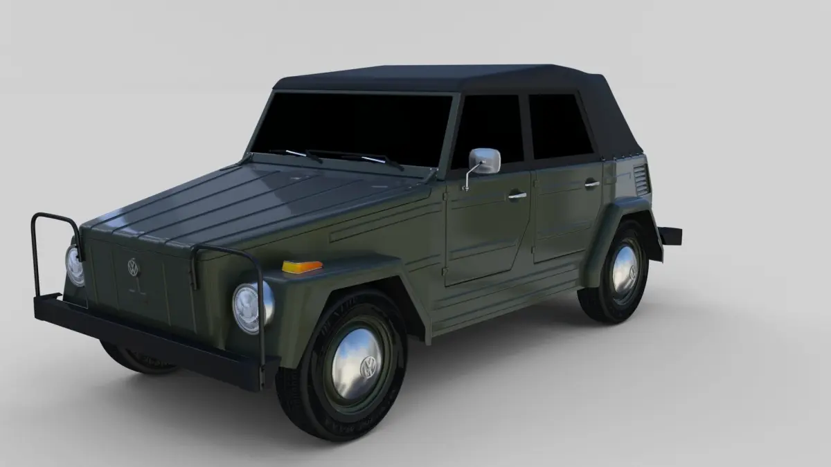 A very accurate model of a Volkswagen 181 Thing. The model comes in five formats:-.blend, rendered with cycles, as seen in the images, animated;-.obj, with materials applied;-.dae, with materials applied;-.stl, 3D print ready;-.fbx;This 3d model was originally created in Blender 2.78 and rendered with Cycles.The model has materials applied in all formats, and are ready to import and render.For any problems please feel free to contact me.Don't forget to rate and enjoy!