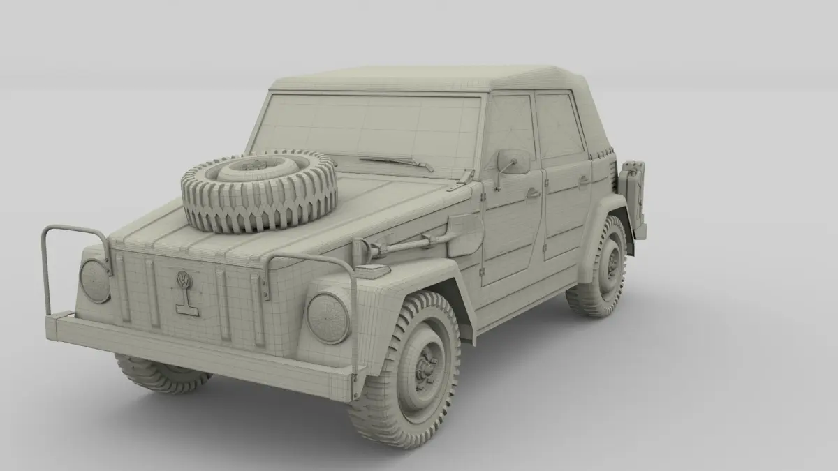A very accurate model of a Volkswagen 181 Thing. The model comes in five formats:-.blend, rendered with cycles, as seen in the images, animated;-.obj, with materials applied;-.dae, with materials applied;-.stl, 3D print ready;-.fbx;This 3d model was originally created in Blender 2.78 and rendered with Cycles.The model has materials applied in all formats, and are ready to import and render.For any problems please feel free to contact me.Don't forget to rate and enjoy!