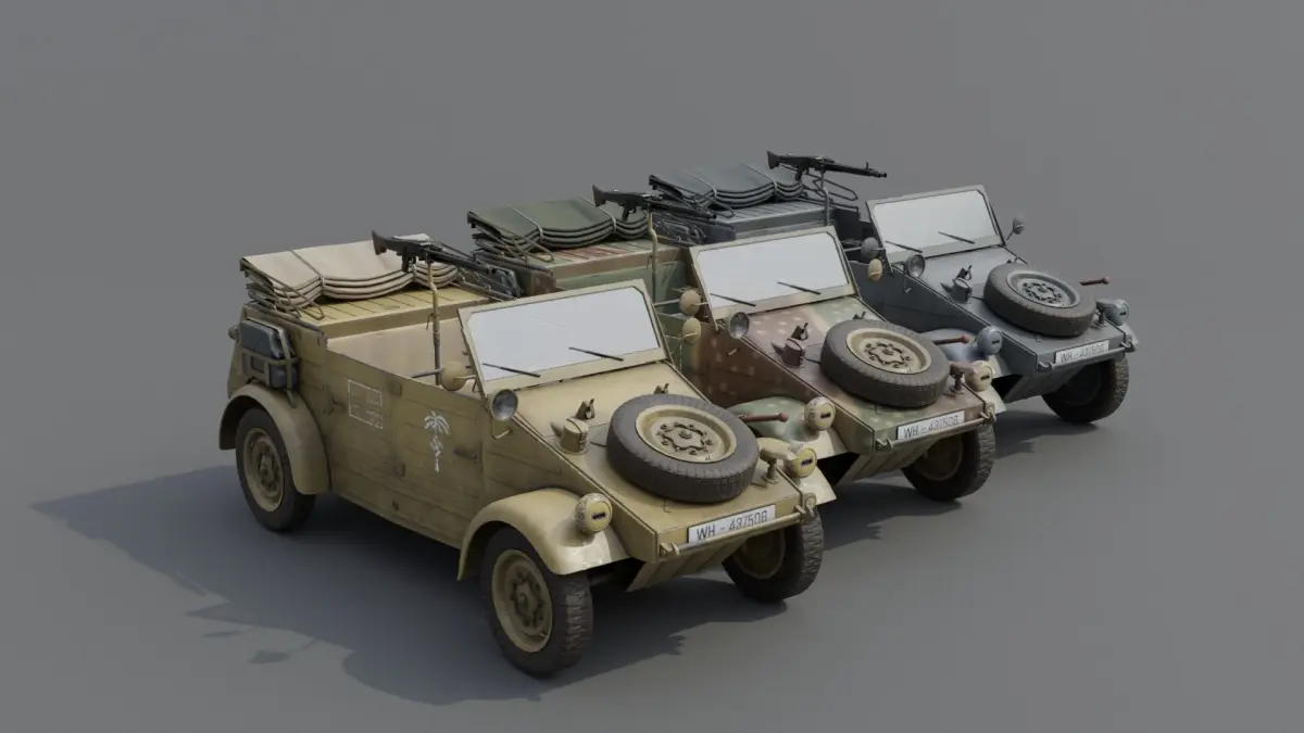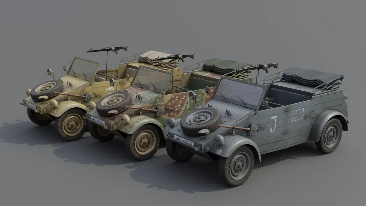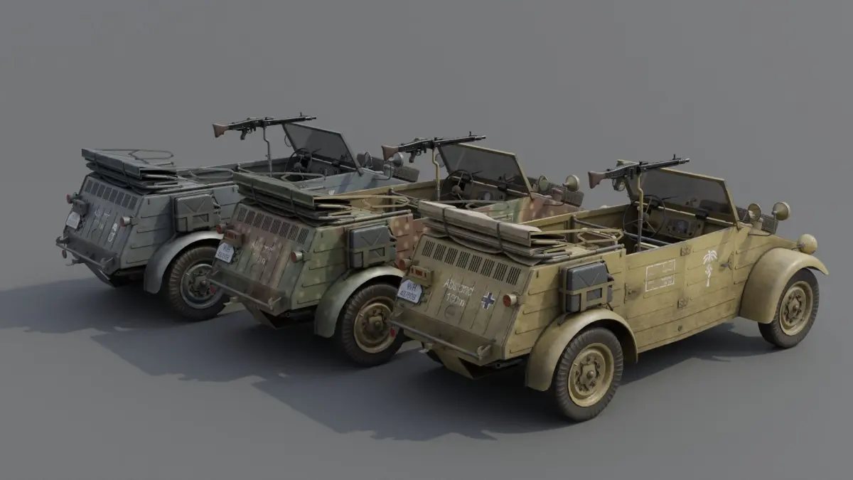 Description:Since the mid-1920s, the German army was looking for a light passenger carwith improved mobility in the field. According to the assumptions, they were to have standard 4x2 chassis and completely open bodies. To protect against bad weather conditions, they were to be equipped with a foldable canvas roof and roll-up canvas covers in place of the doors. These vehicles were to have increased ground clearance by installing larger wheels, as well as reinforced springs, rebuilt exhaust systems and brakes. The safety of the car crew during off-road driving was to be increased by specially shaped bucket seats. They provided additional side support, protecting against falling out of the vehicle. Initially, because of such seats, light off-road passenger vehicles were called Kübelsitze by soldiers. Later - Kübelsitzwagen. Ultimately, the shortened name was adopted - Kübelwagen. Over time, this name became the traditional name for German two-axle open-top off-road vehicles, even when they were no longer equipped with characteristic seats. German Army (The Reichswehr , and later the Wehrmacht ) used vehicles of this type of many different brands. These were often off-road civilian passenger cars.