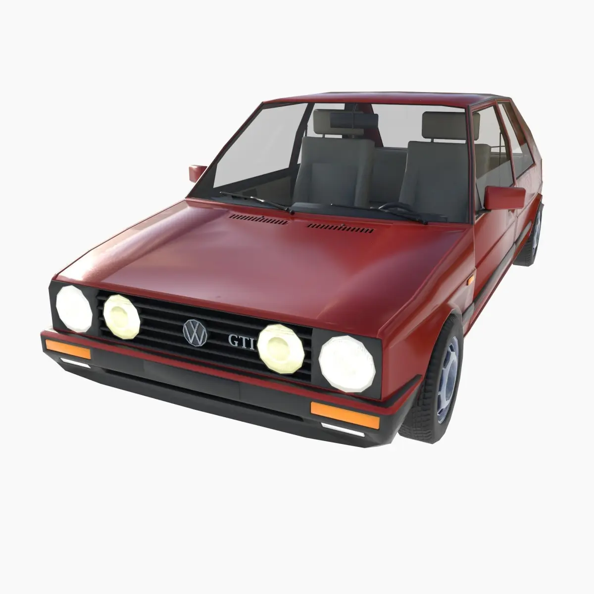 Low-poly 3d model of the 2nd generation Volkswagen Golf in the GTI generation.The model can be animated. open doors, hood, trunk, turn wheels. The model can easily be used in games and renderings. You can configure the inclusion of headlights, turn signals and brake lights, side lights and flashing lights. An emissive map was made for this purpose. The model was made in Cinema 4D 2023, converted to 3DS Max, blender, Unreal Engine 5.3, Unity 2022.3, fbx, etc. PBR textures 4K 4096x4096 and 2K 2048x2048 targa, jpeg, png formats.