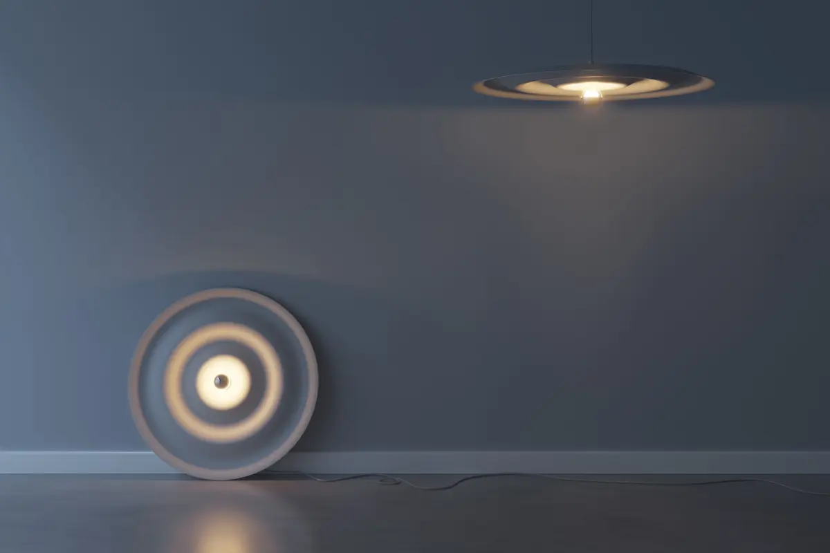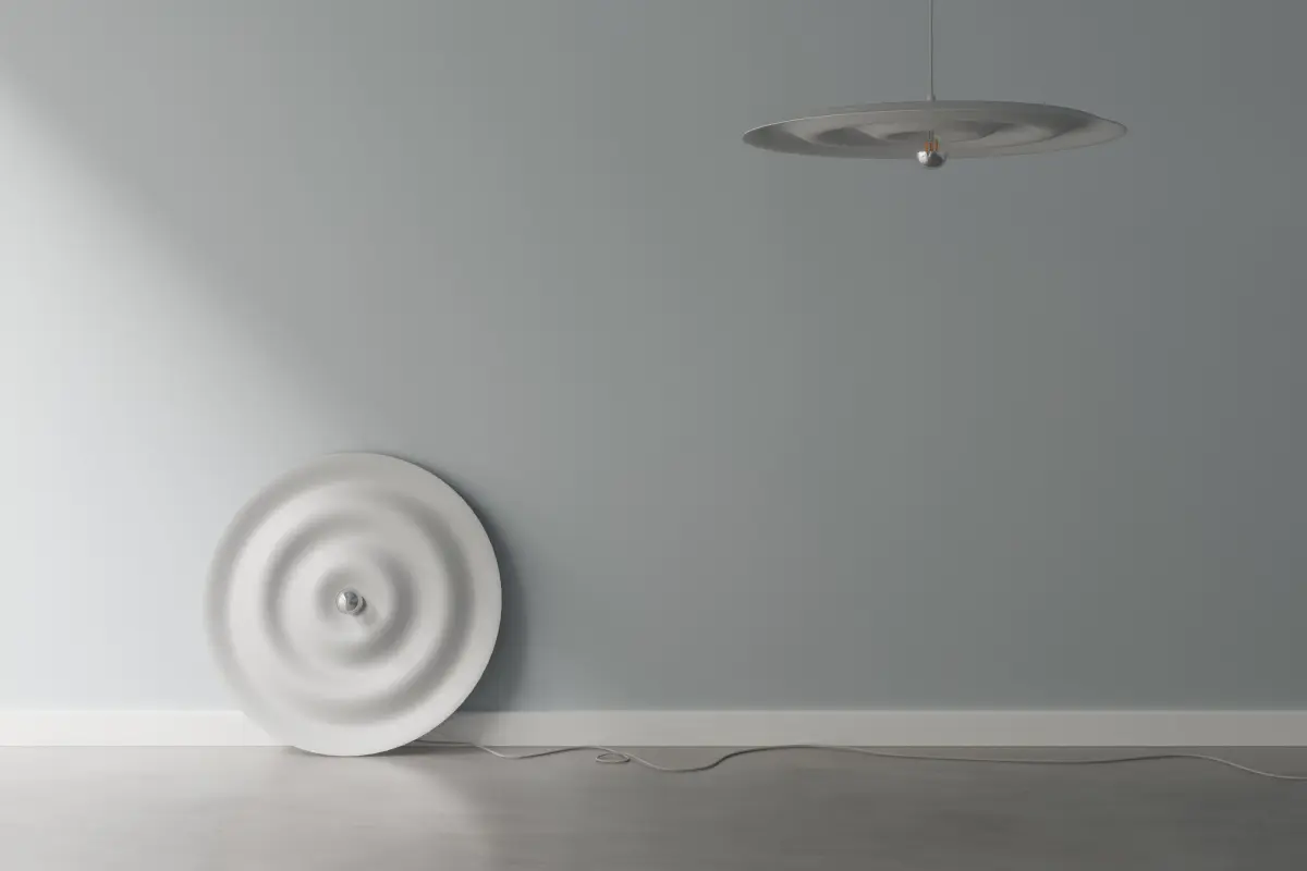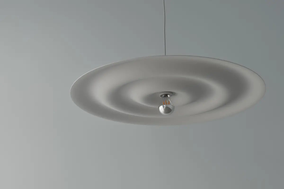 Tham Videgård, a Stockholm based office, designed this lamp with the Swedish manufacturer Wästberg. The lamp consists of a circle disformed by diffuse waves and has a satin matte finish that gives it a sculptural quality.