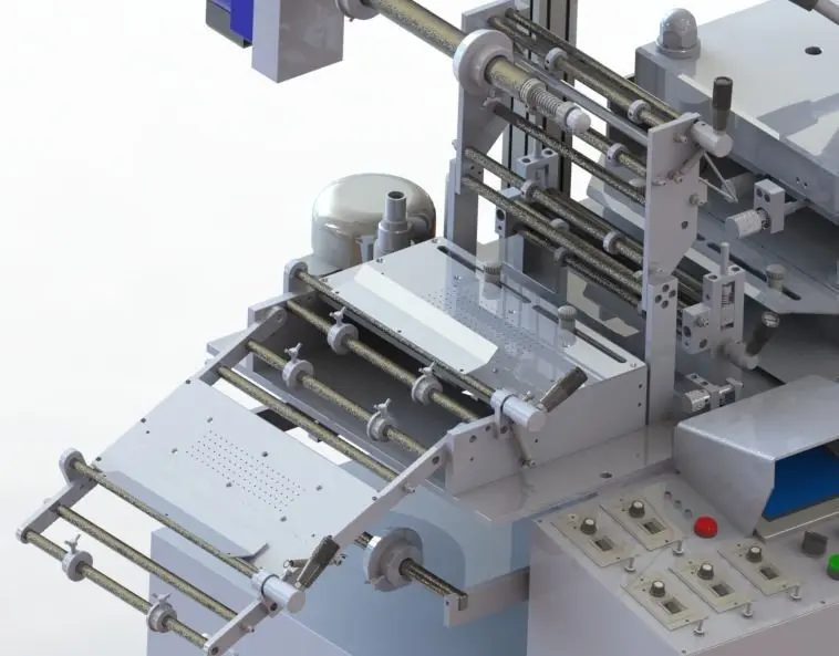The die-cutting machine can also be called a cutting machine. It consists of a frame, a mold base, feeding, laminating, peritoneum, drawing and other parts. It is widely used in electronics, packaging and medical processes. The equipment is fully automatic production and automatic supply The material and crank structure are used for die-cutting, and the structure is stable. This equipment is a mature equipment in the industry, and the structure is already very complete. It is worth studying for friends who make this equipment and want to learn. The equipment has a modeling process for the 2016 equipment, and the engineering drawings of the entire equipment are very detailed.