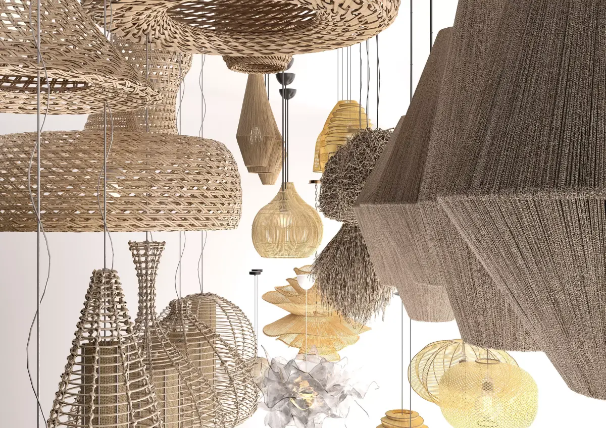 Bring soul and warmth into any space with this carefully crafted collection of Boho Pendant Lights. Designed to reflect the essence of bohemian style, each model in this set features authentic natural materials like rattan, wicker, wood, fabric, and reed, meticulously modeled for realism and texture accuracy.