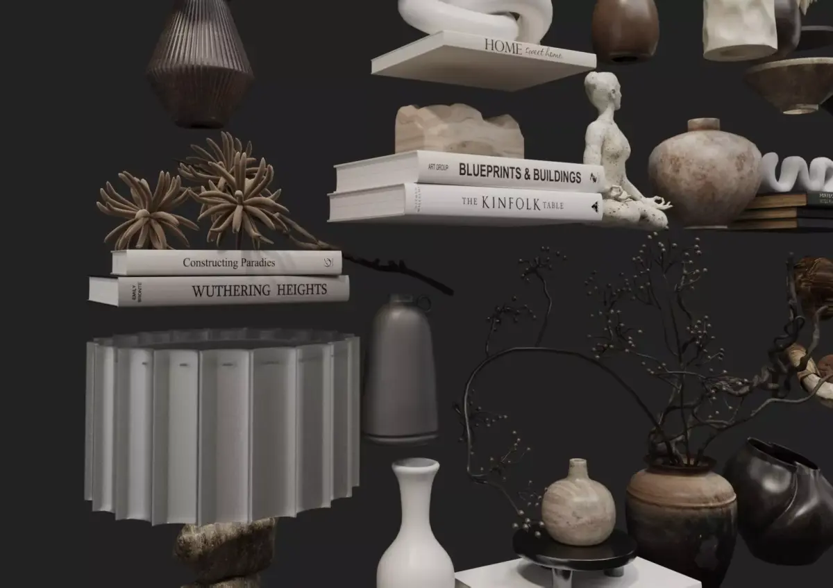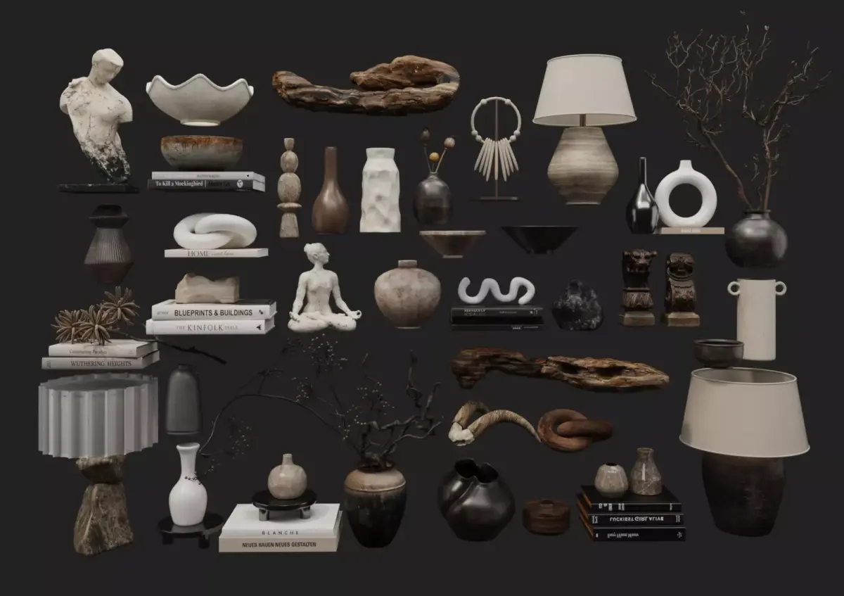 This collection includes a large set of contemporary decorative objects designed for interior visualization, staging, and high-end rendering.The pack features sculptures, vases, lamps, books, wooden accents, abstract ornaments, ceramic pieces, and natural elements - carefully crafted with realistic textures and clean topology.These assets are perfect for Scandinavian, Wabi-Sabi, Japandi, Minimalist, and Luxury interior styles.