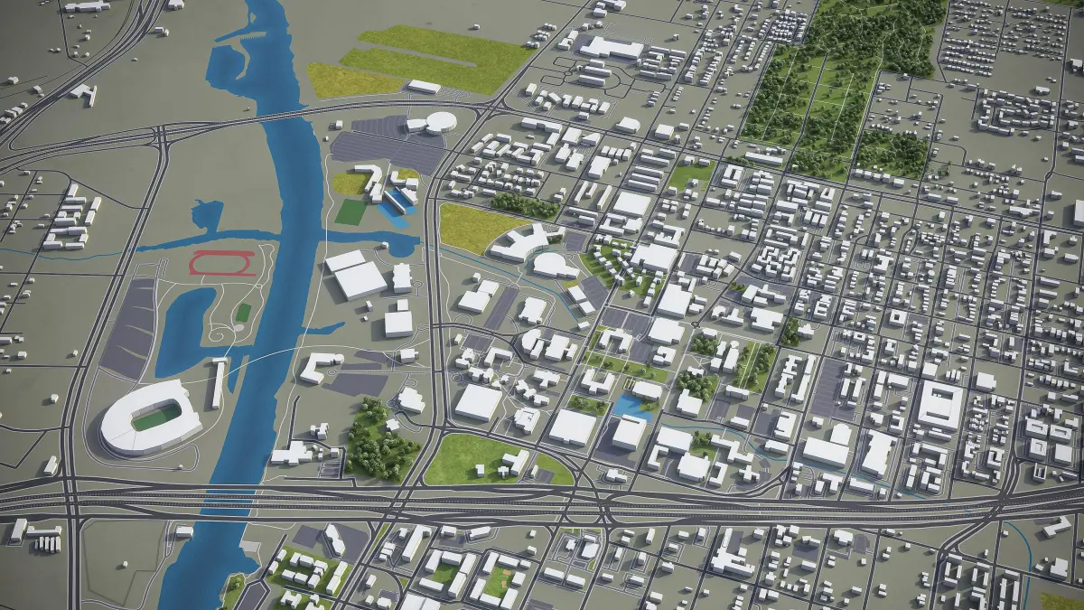 - Full city extents up to 100 x 100 km — or crop to an area of interest for better format compability and scene performance