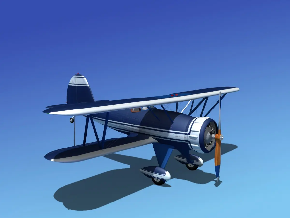 WACO YMF-5 medium poly biplane was built near to scale within a couple of percent of actual general dimensions. It has high resolution textures and is available in a wide range of formats. It has a lot of detailed modeling including the radial engine, cockpit and much more. The model includes many animateable features such as ailerons, elevators, rudder, propeller and controls. This model was developed for animation and rendering in-flight. It may be used for other purposes such as a static model to populate an airport scene.
