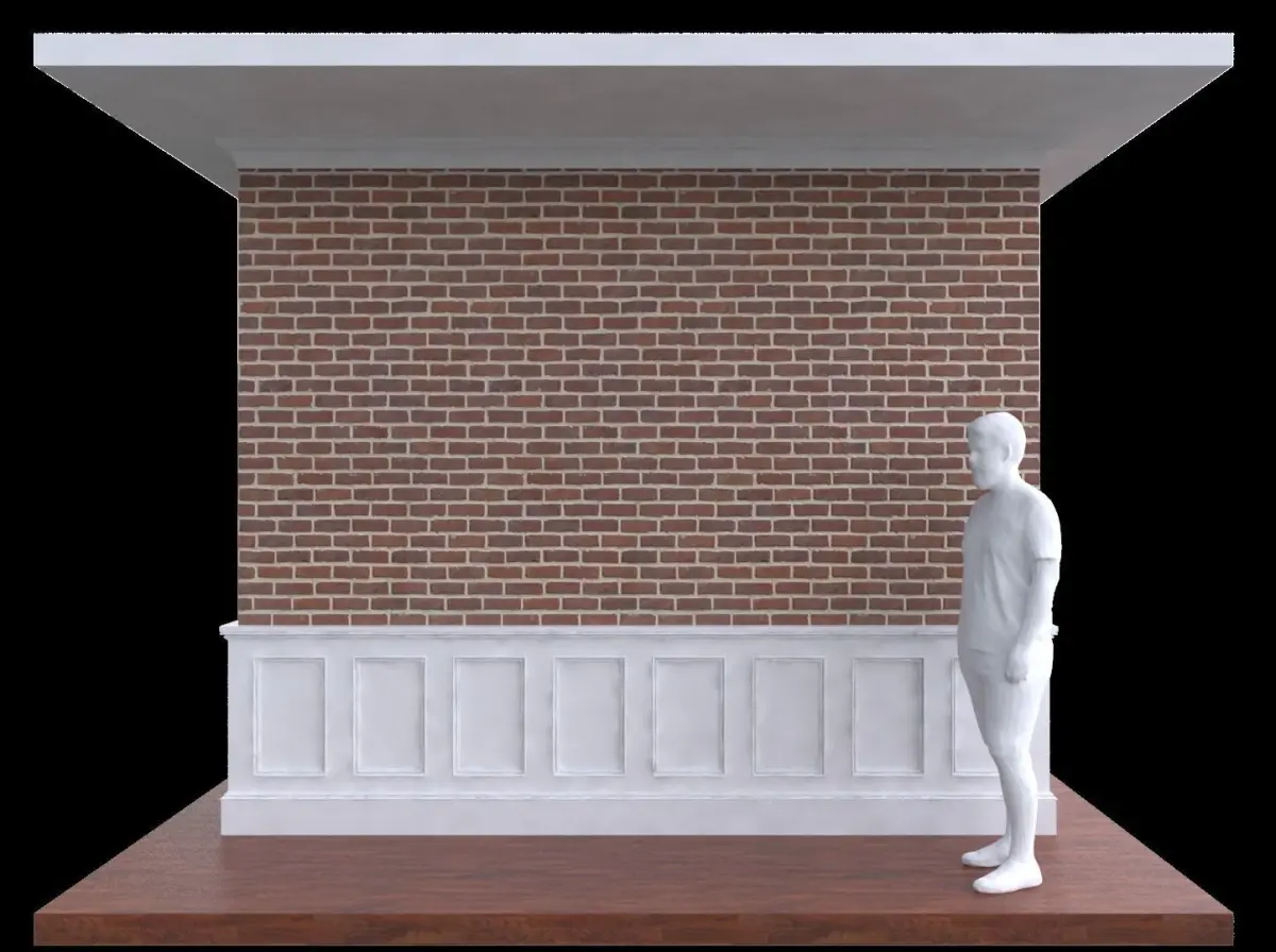 Wainscoting detailing with brick wall and crown molding Low-poly 3D model