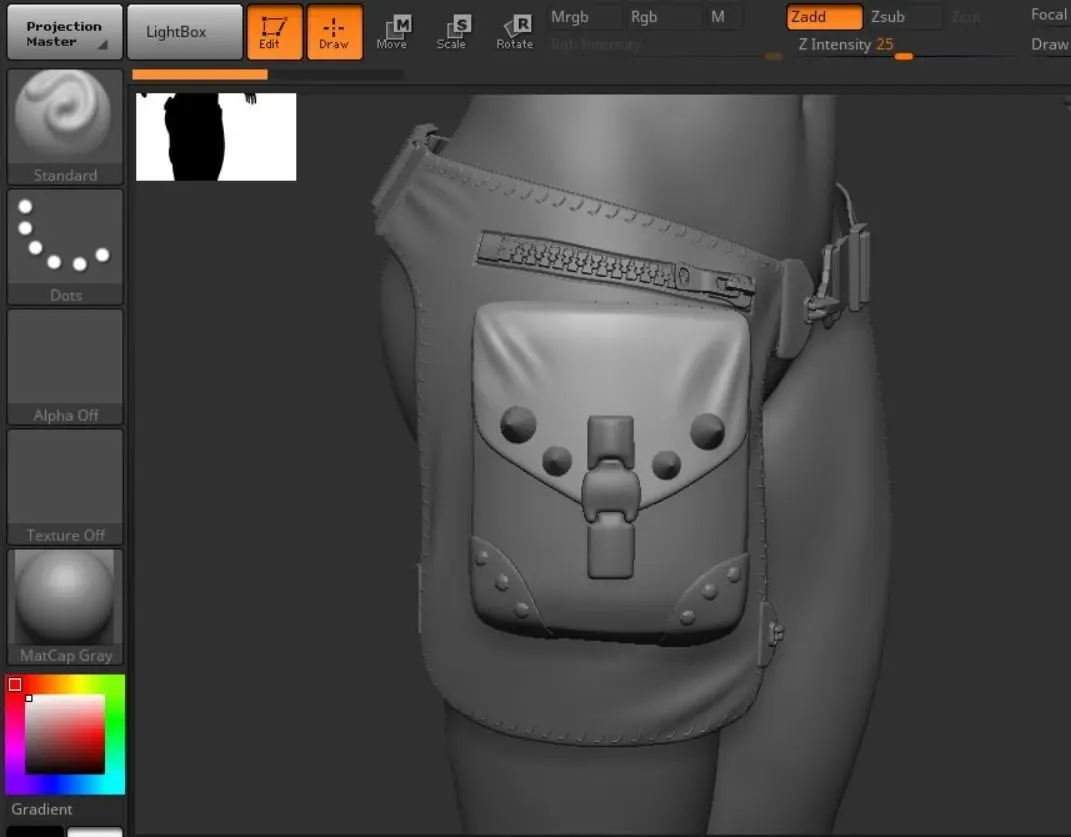 Waist bag LowPoly for your gaming character! The model has a sweep and high-quality textures. Formats: Autodesk Maya, ZBrush Textures: 4096 x 4096, Non-overlapping