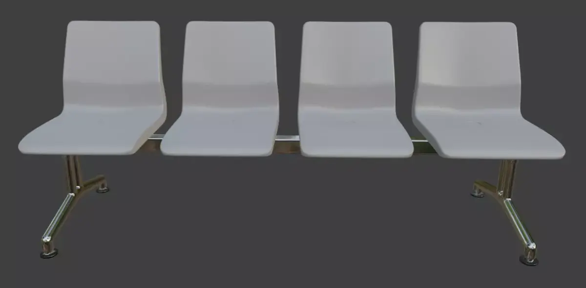 Formats available: OBJ, FBX, STL, USDZ, GLB. Includes PBR textures (diffuse, normal, roughness, metallic, etc.). Add professional public seating to your 3D projects with this versatile airport bench model!