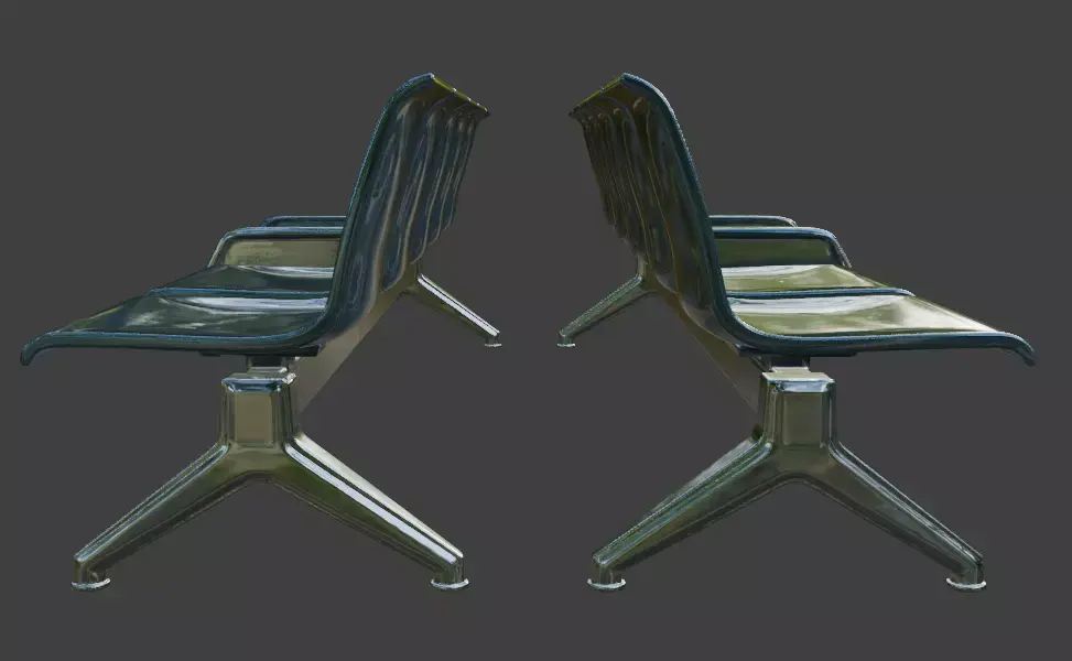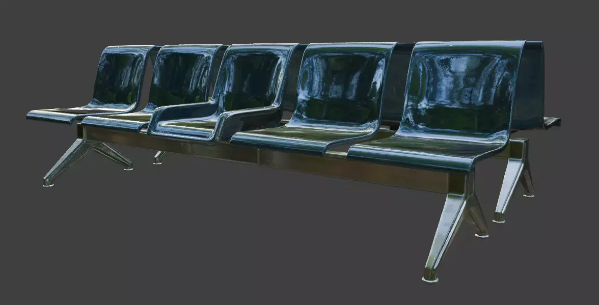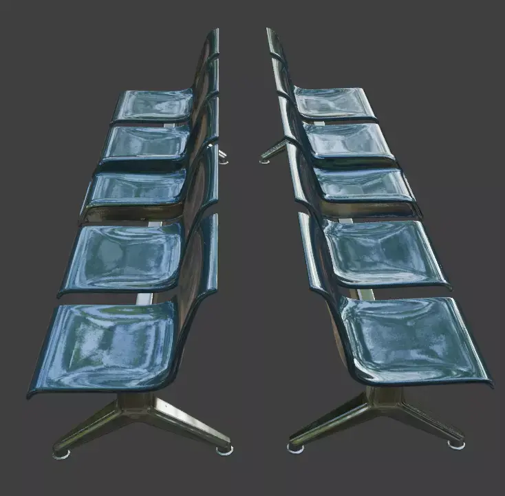 Formats available: OBJ, FBX, STL, GLB, USDZ. Includes PBR textures (diffuse, normal, roughness, metallic, etc.). Add professional public seating to your 3D projects with this versatile airport bench model!