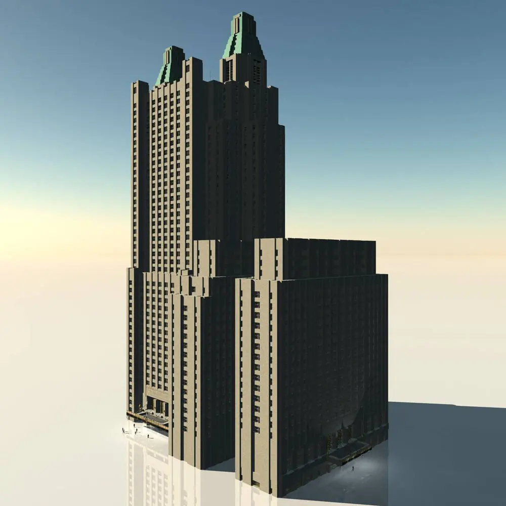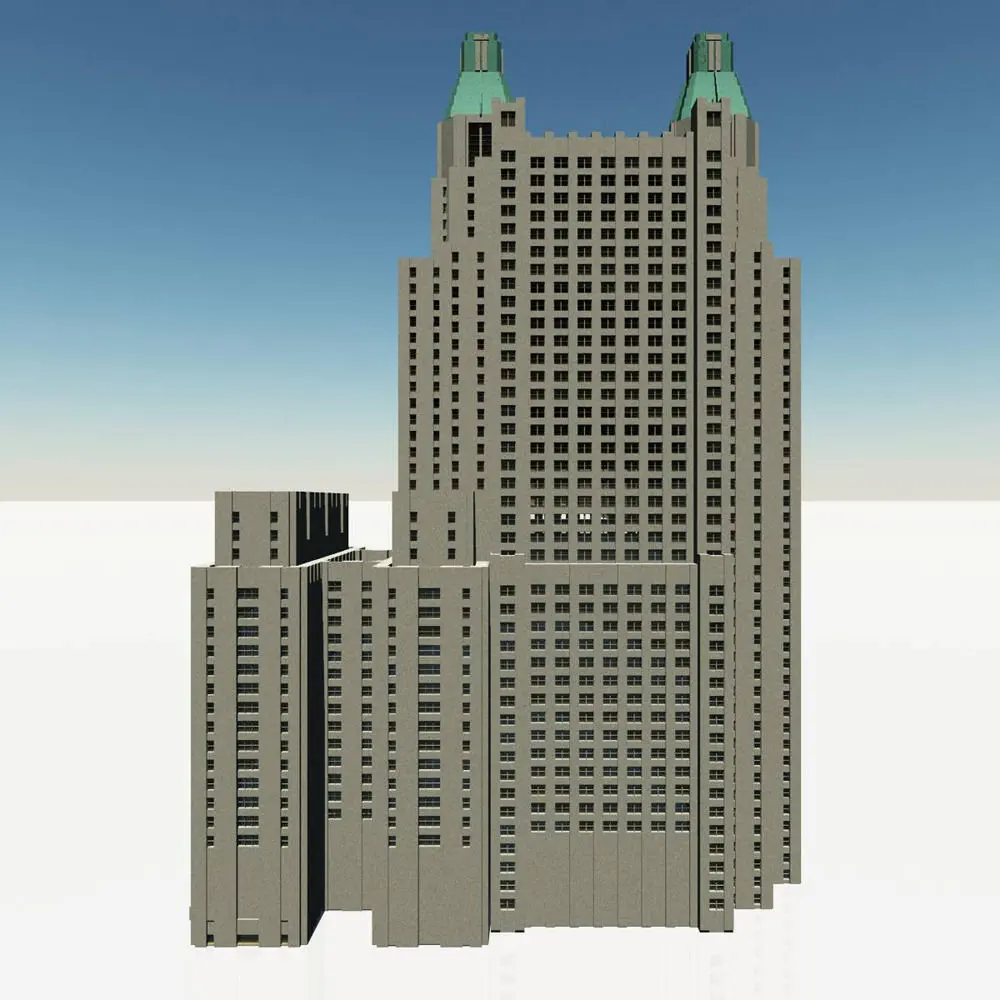 This digital model is based on the Waldorf Astoria Hotel in New York City.