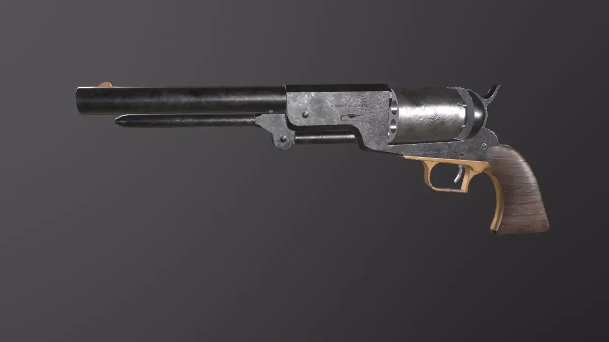 Game-Ready LowPoly model for First Person Shooter or Third Person Shooter. Ready for animation. Barrel, trigger, hammer, cylinder and loader are separate meshes. Ammo included (conical and spherical bullets). Also included powder flask(cap and flask are separate meshes). Separate texture sets for gun, ammo and flask.