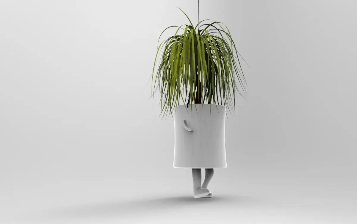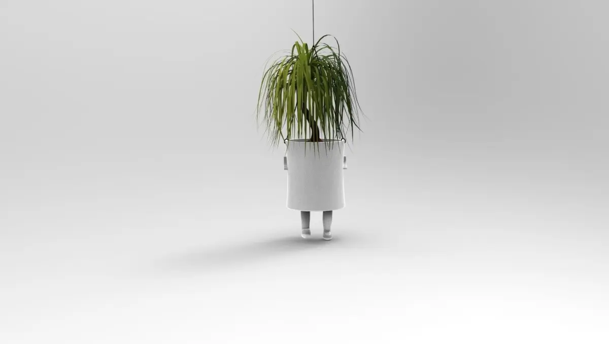 [[ 3D model of simple planter(pot) with short legs and hands in walking pose ]]