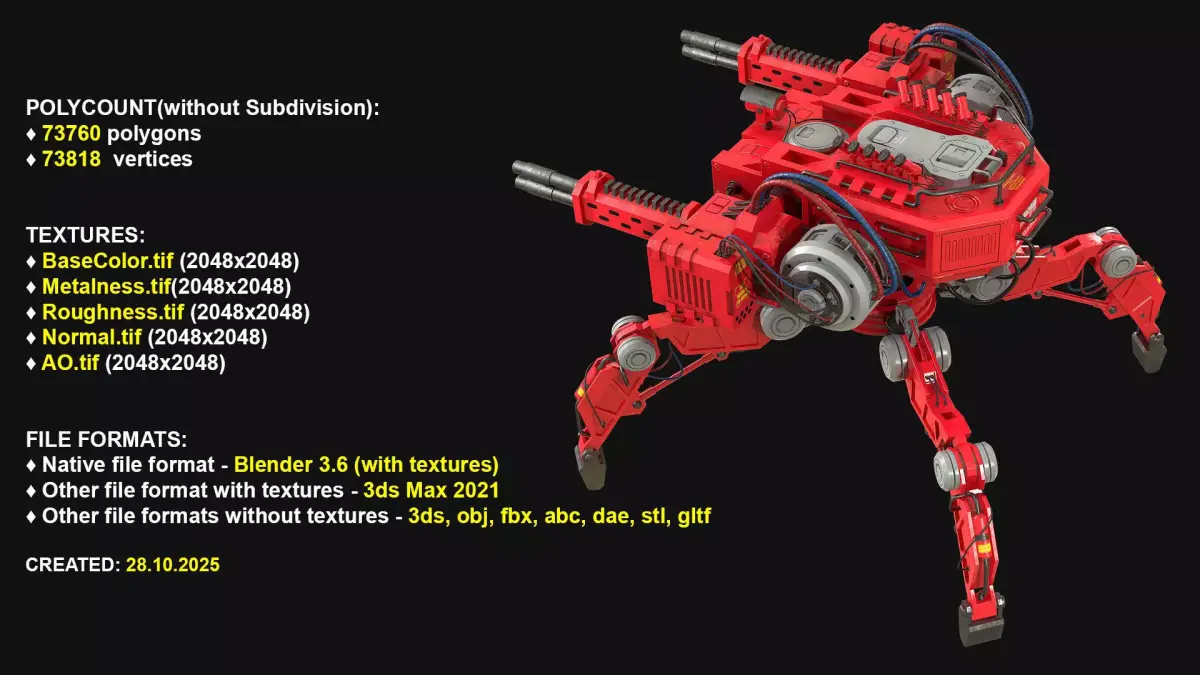 - Realistic 3D model of a Walking Turret Concept_1_Red
