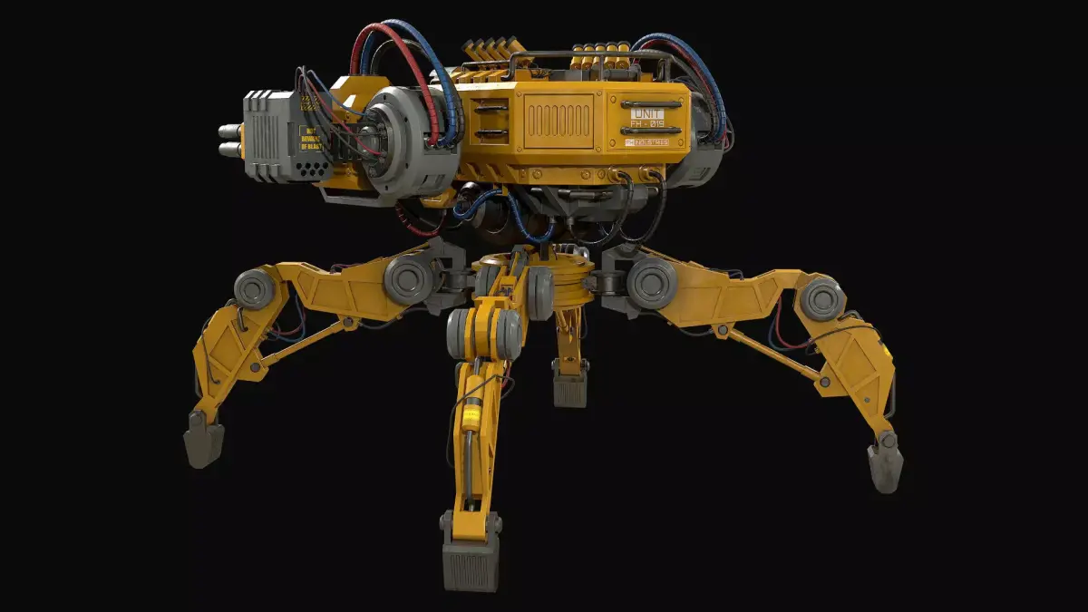 - Realistic 3D model of a 297_6_Walking Turret Concept_1_Yellow