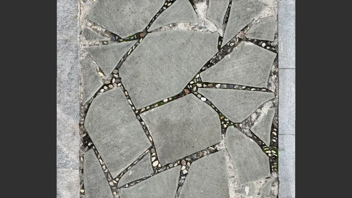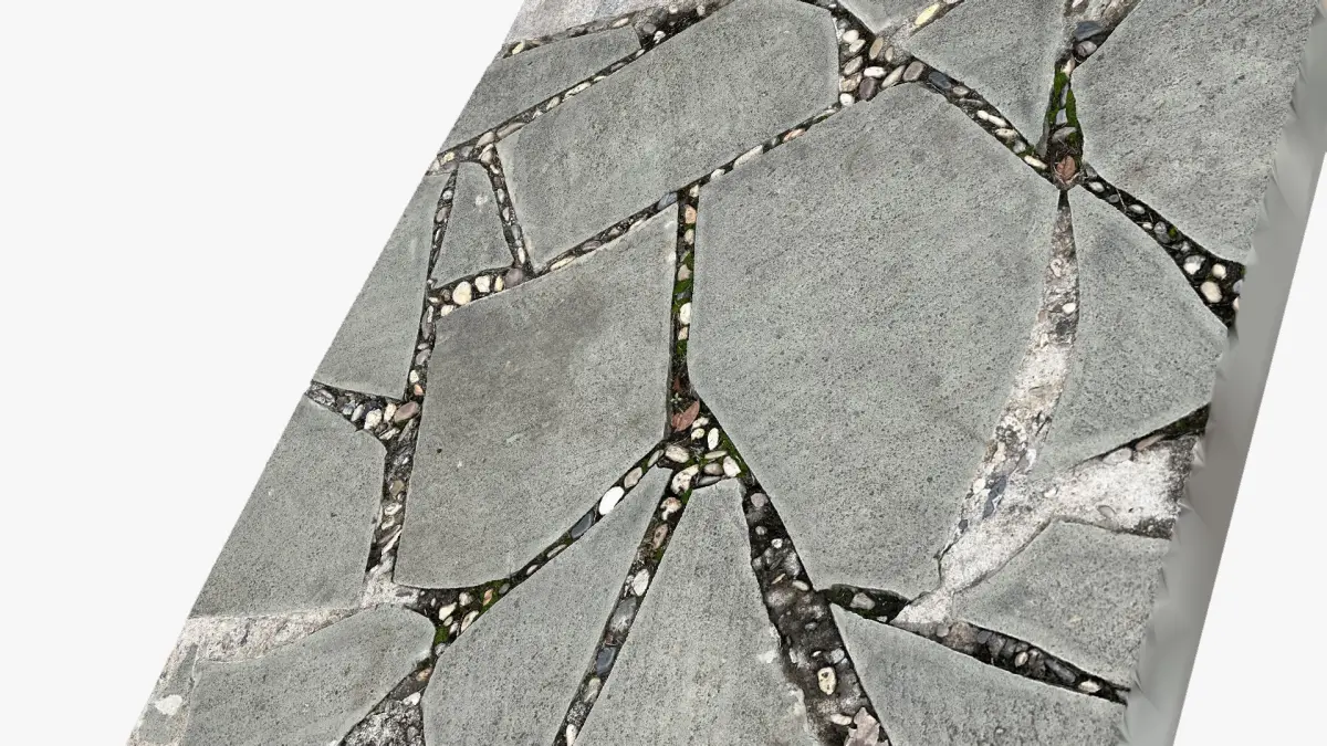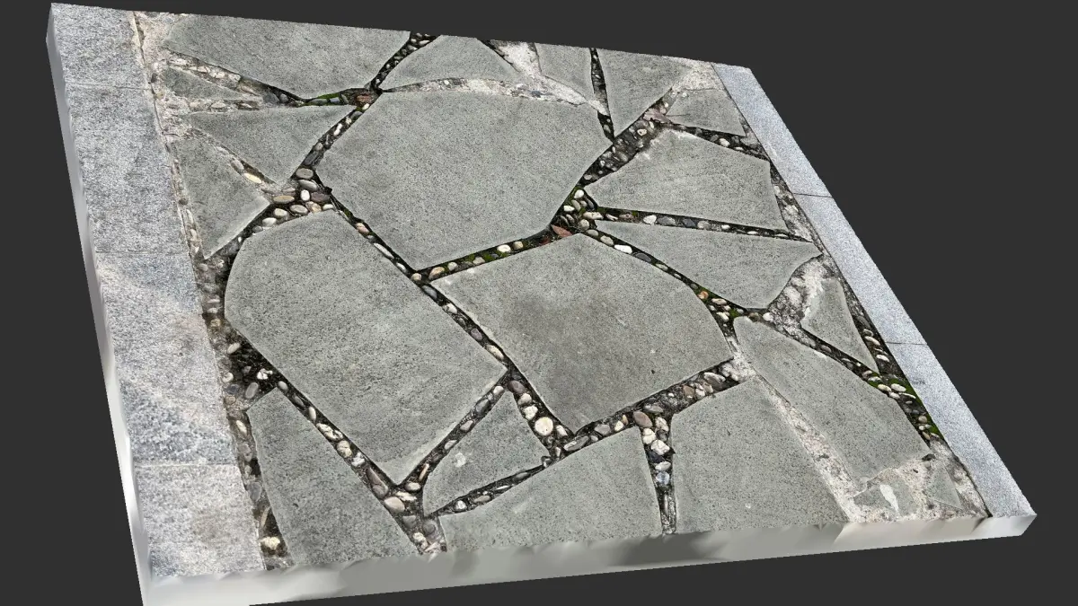 - A corridor composed of flat floor tiles and stones. Pavement. Ground. 3d scanning.