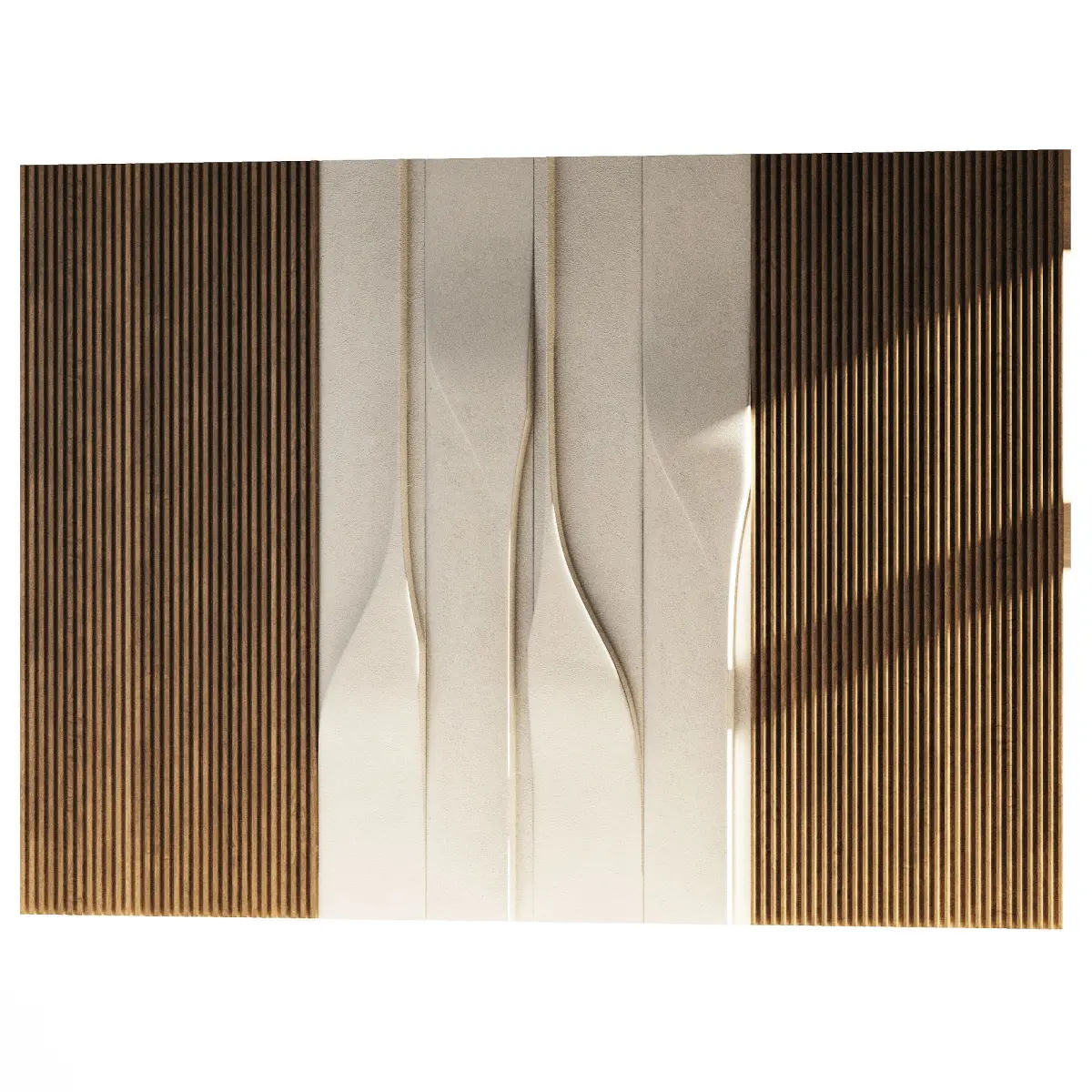 Name: Wall 3D panel 03Format: 3Ds Max 2019Export: OBJ, MATRender: Corona (9)Polys: 41784Verts: 42284Matclasses: CoronaLegacyMtlUnits: MillimetersDimension: 4908.85 x 84.3 x 3001.34