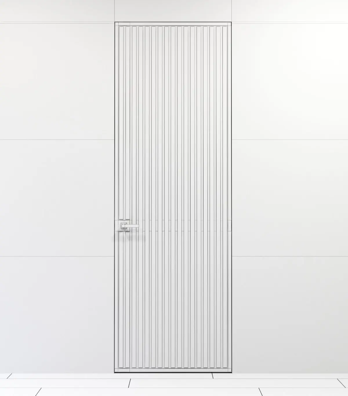 Wall bathroom door with mirrored stripes.Prepared for high resolution realistic renders. Previews were rendered in 3ds Max 2015, Corona renderer.Lighting, cameras and studio setups are not included.
