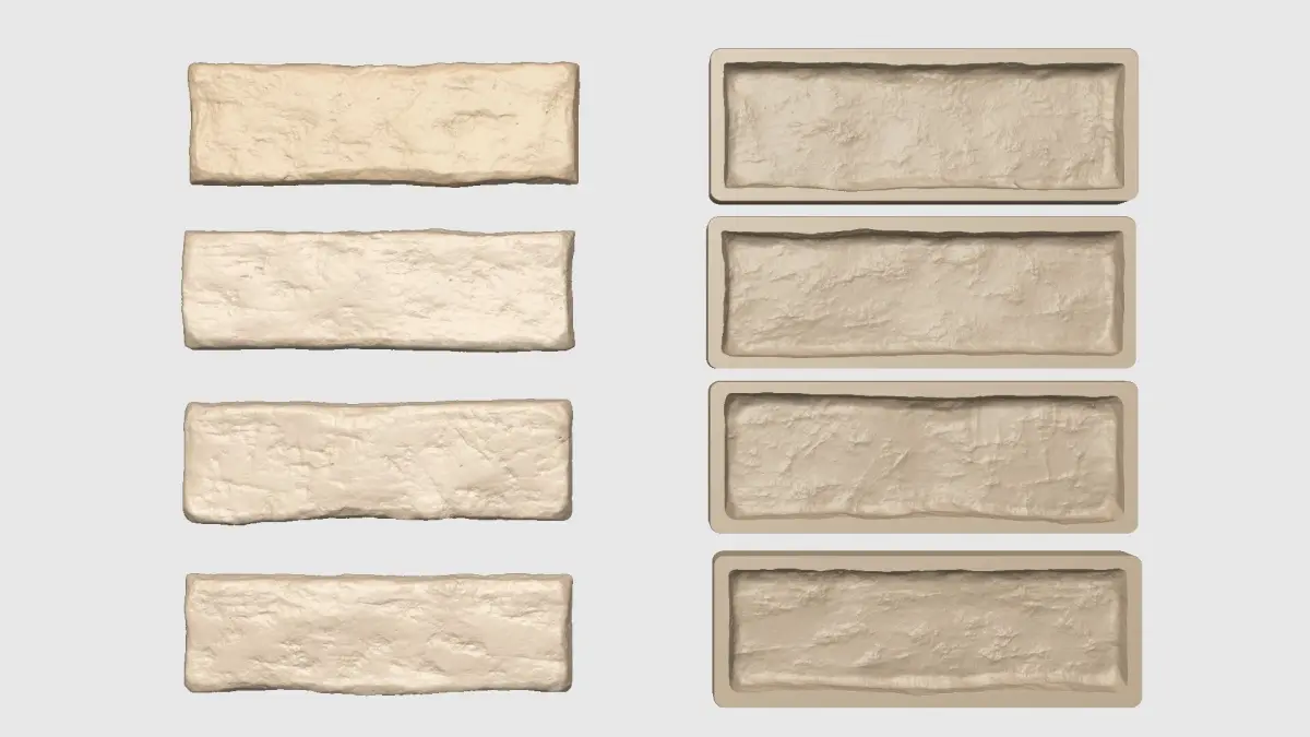 Four brick moldings, male and female, for wall panel decorMale and Female, can be used in different working process