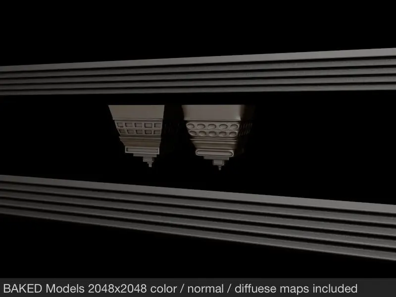 - 1 high quality 2048x2048 texture- baked models included 2048x2048 color / normal / diffusion maps- 2 versions of corner ornament / midpoly and highpoly- non-overlapping UVs