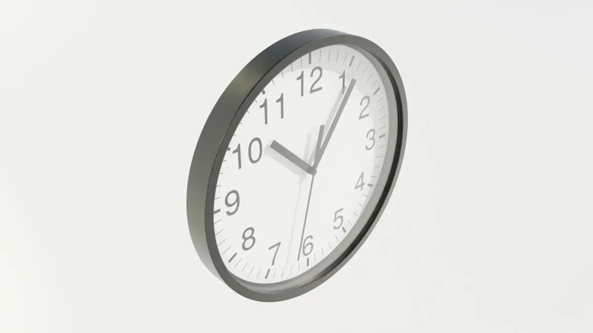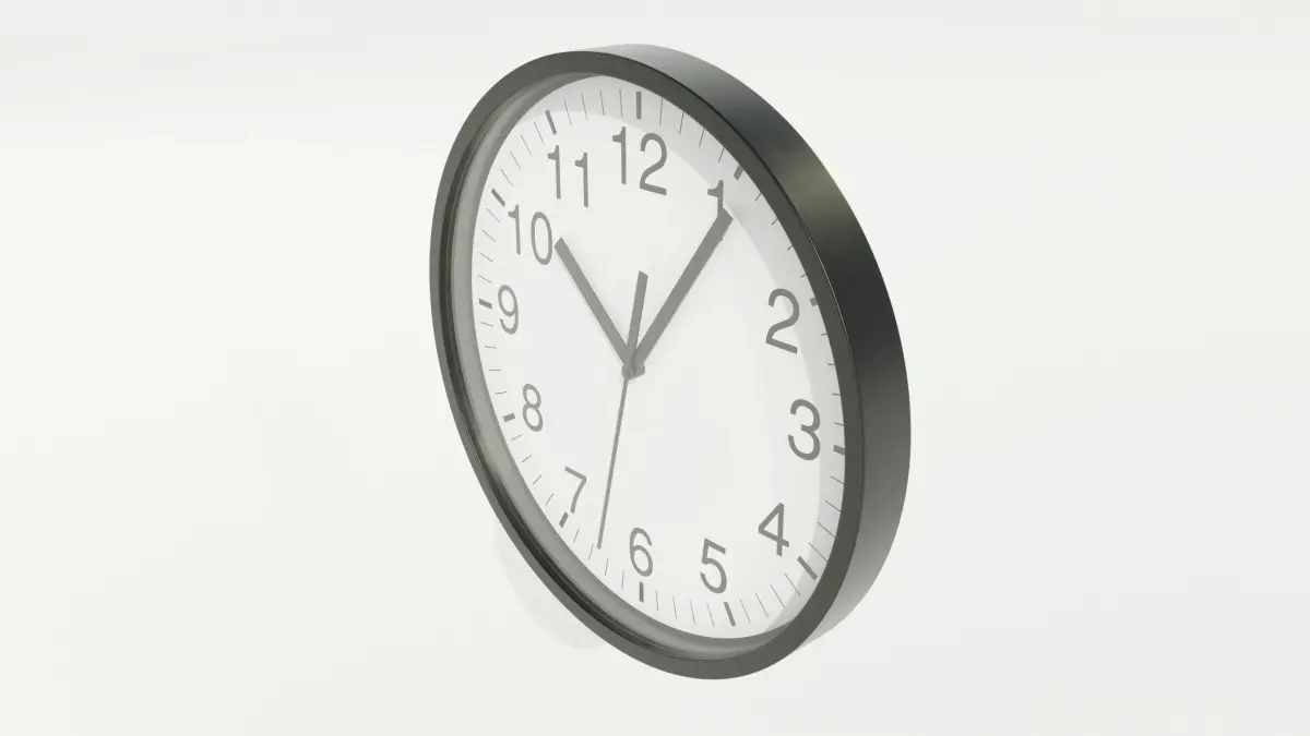 Simple wall clock ready for rendering.The clock hands are separated from the main body and can be adjusted or animated as needed.