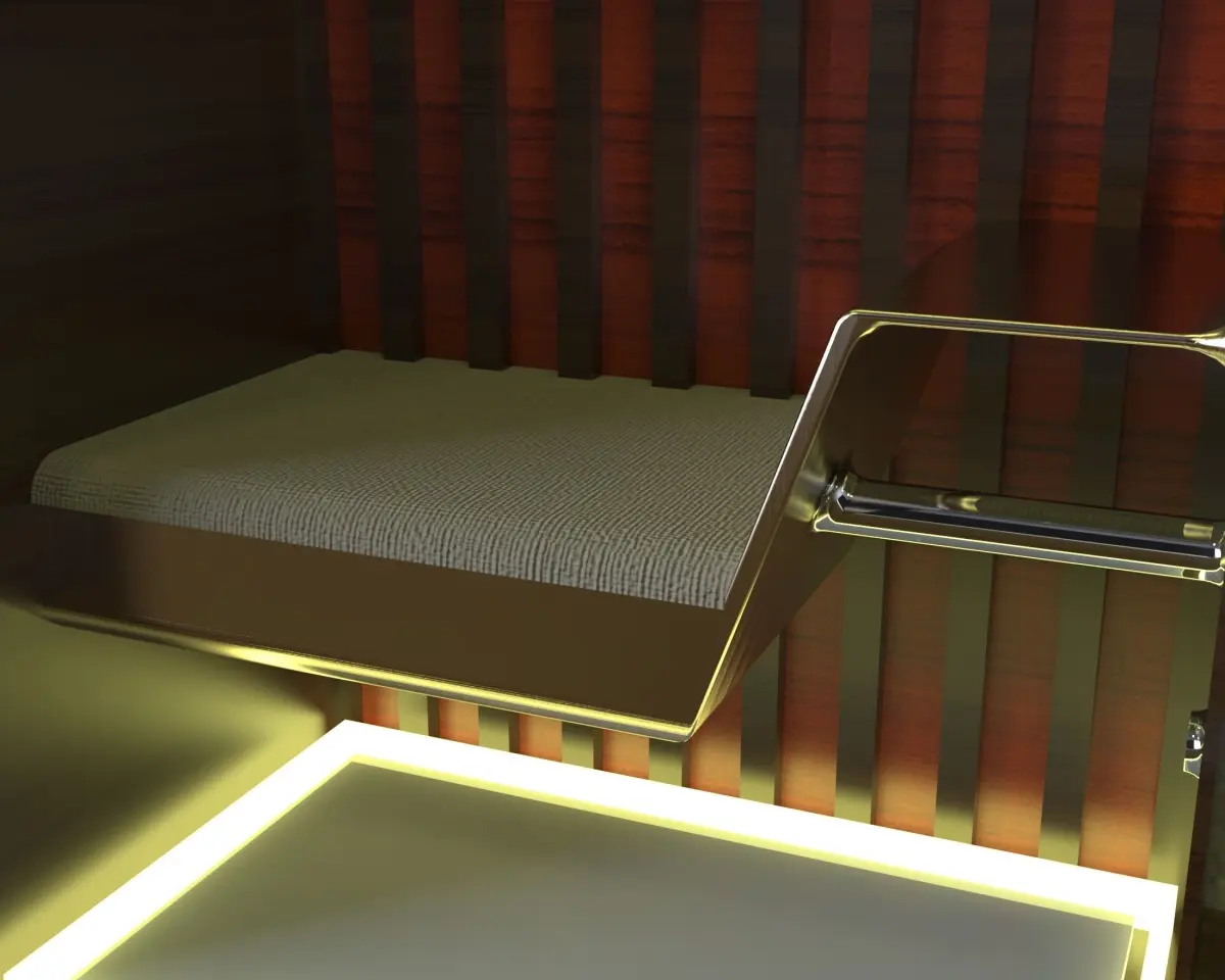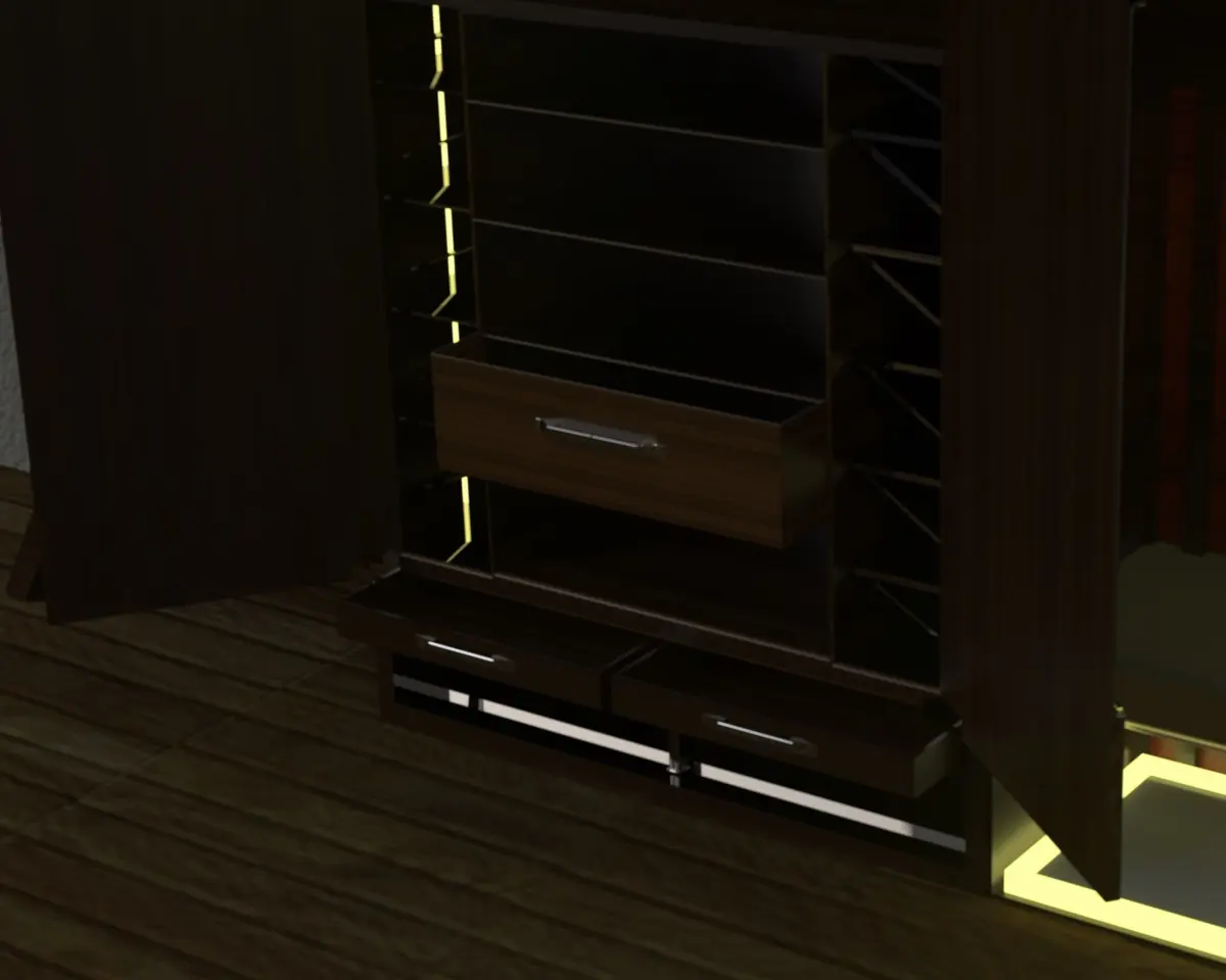 Discover this meticulously designed 3D model of a wall-mounted wardrobe with an elegant semi-circular mirror, created with exceptional detail. The mirror is complemented by a warm yellow backlight, enhancing the ambiance of any room. Perfect for those looking to elevate their interior design projects, this model is ideal for rendering stunning visuals. Purchase now on CGTrader and transform your space with this exquisite