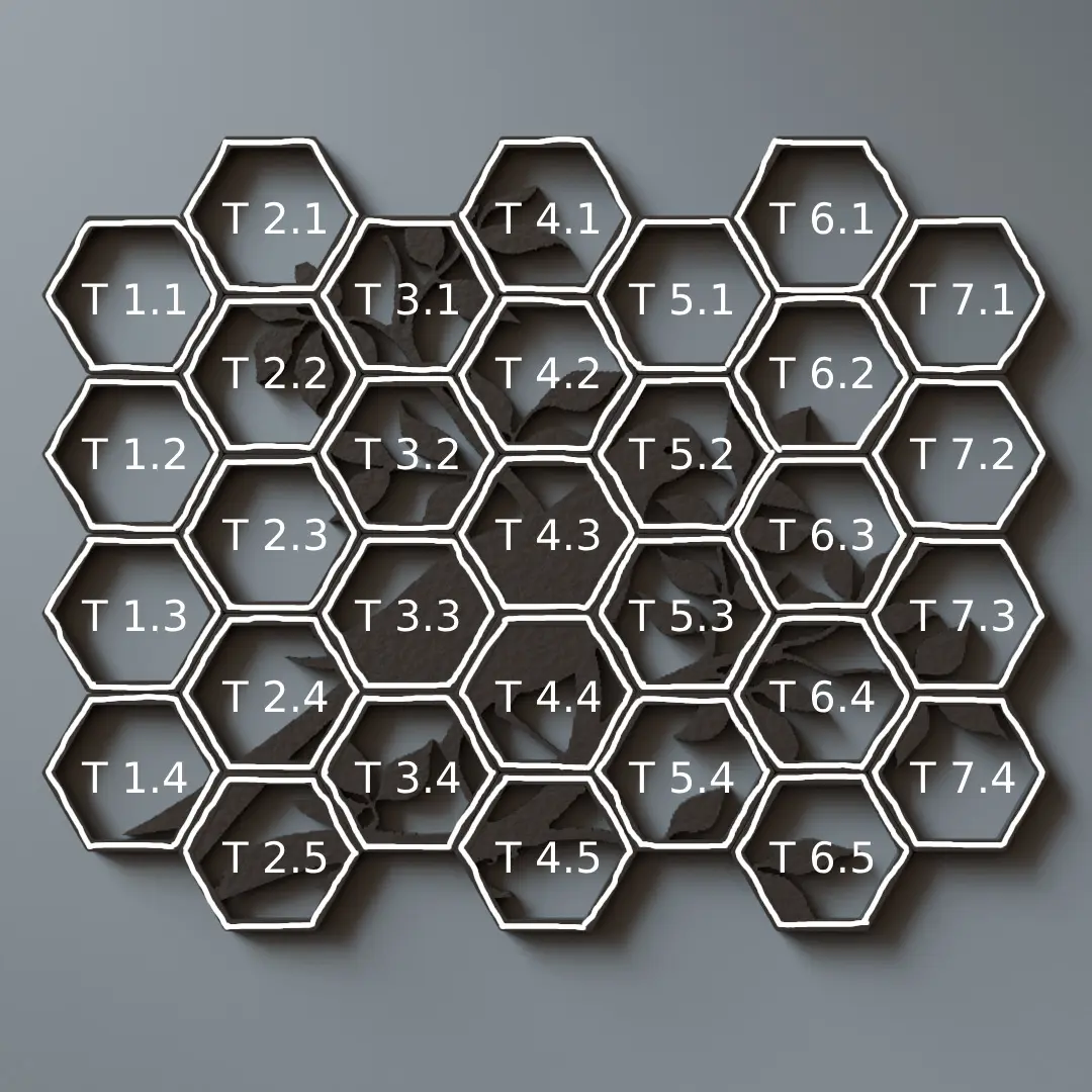 Elevate your home décor with hexagon wall art existing of 30 tiles.