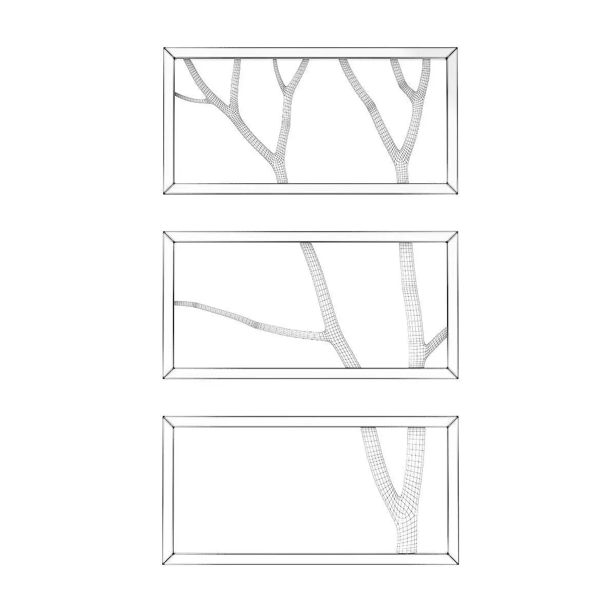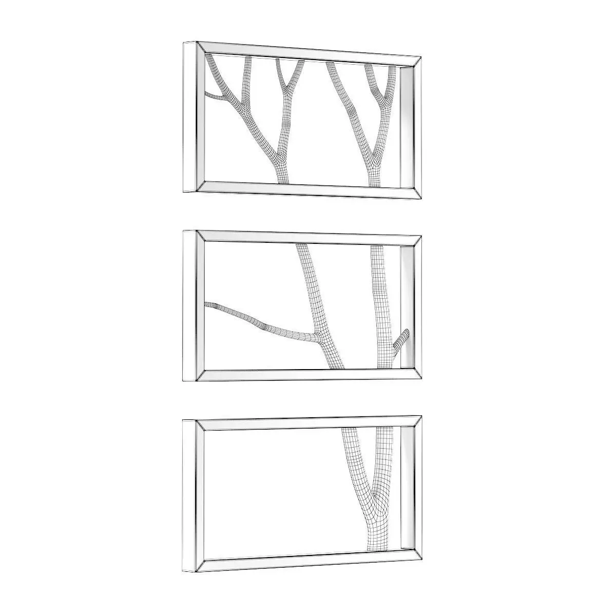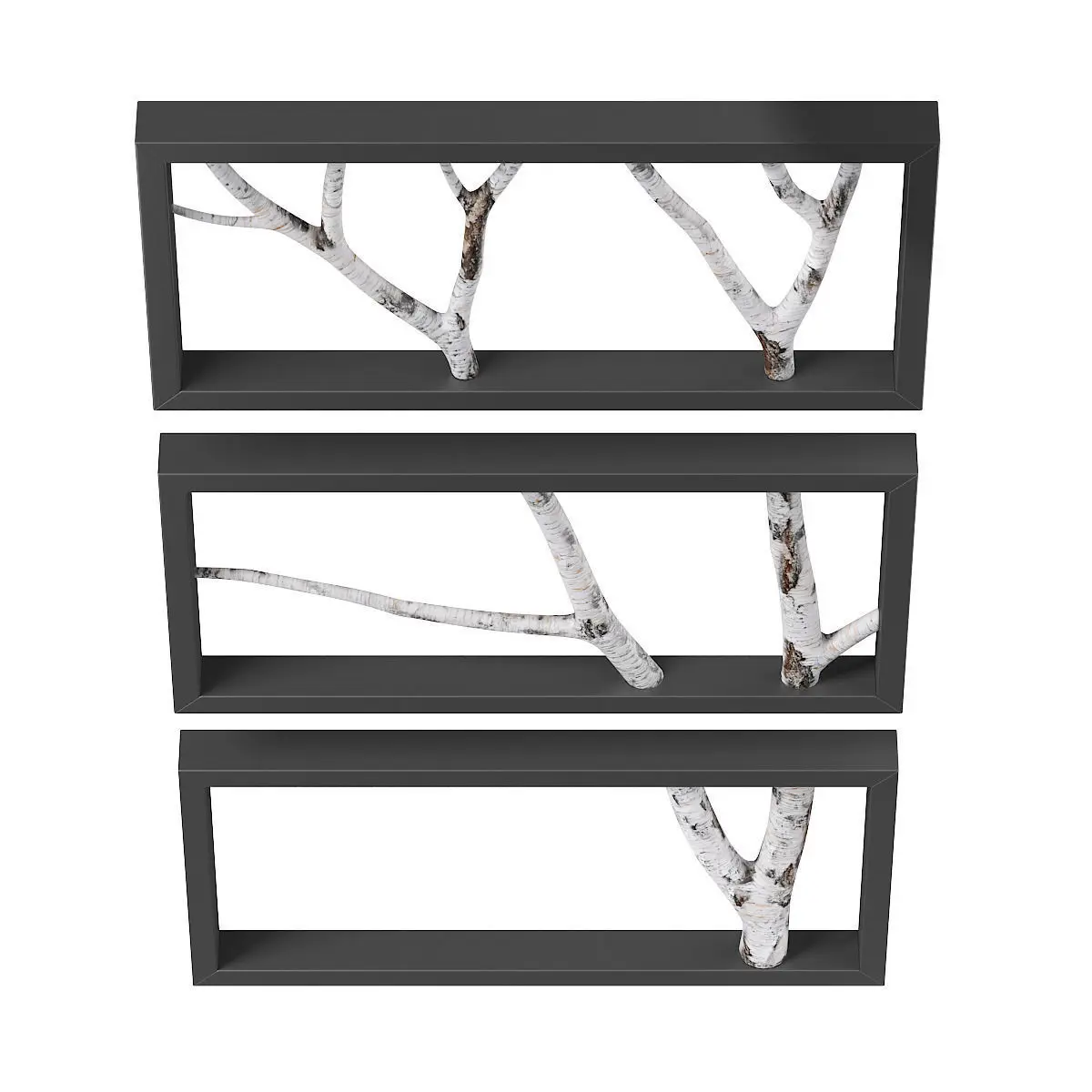 3d model of wall decoration: birch branch in three black frames. Compatible with 3ds max 2010 or higher and many others.